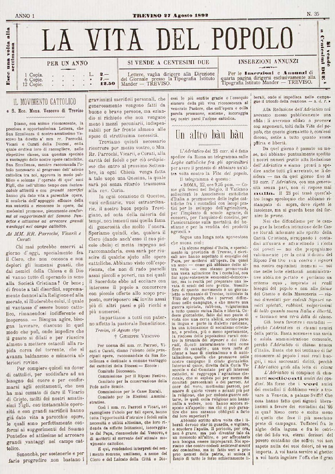 La Vita del Popolo n. 35 del 27/08/1892