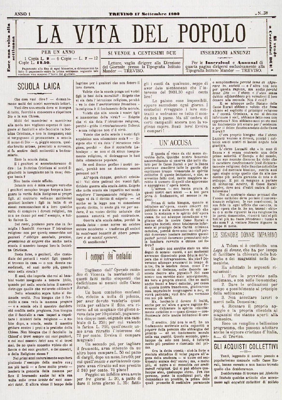 La Vita del Popolo n. 38 del 17/09/1892