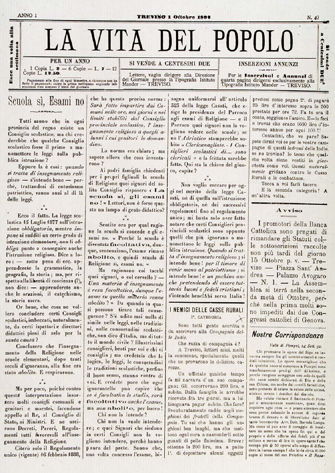 La Vita del Popolo n. 40 del 01/10/1892
