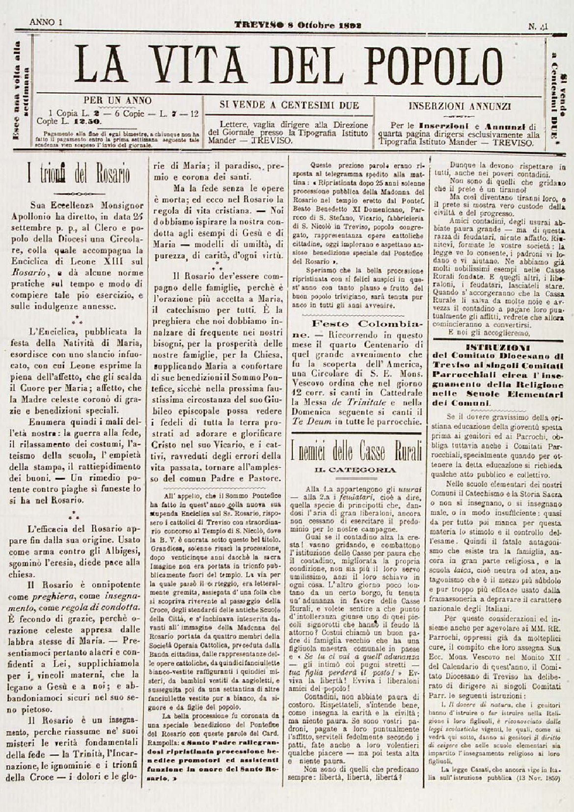 La Vita del Popolo n. 41 del 08/10/1892