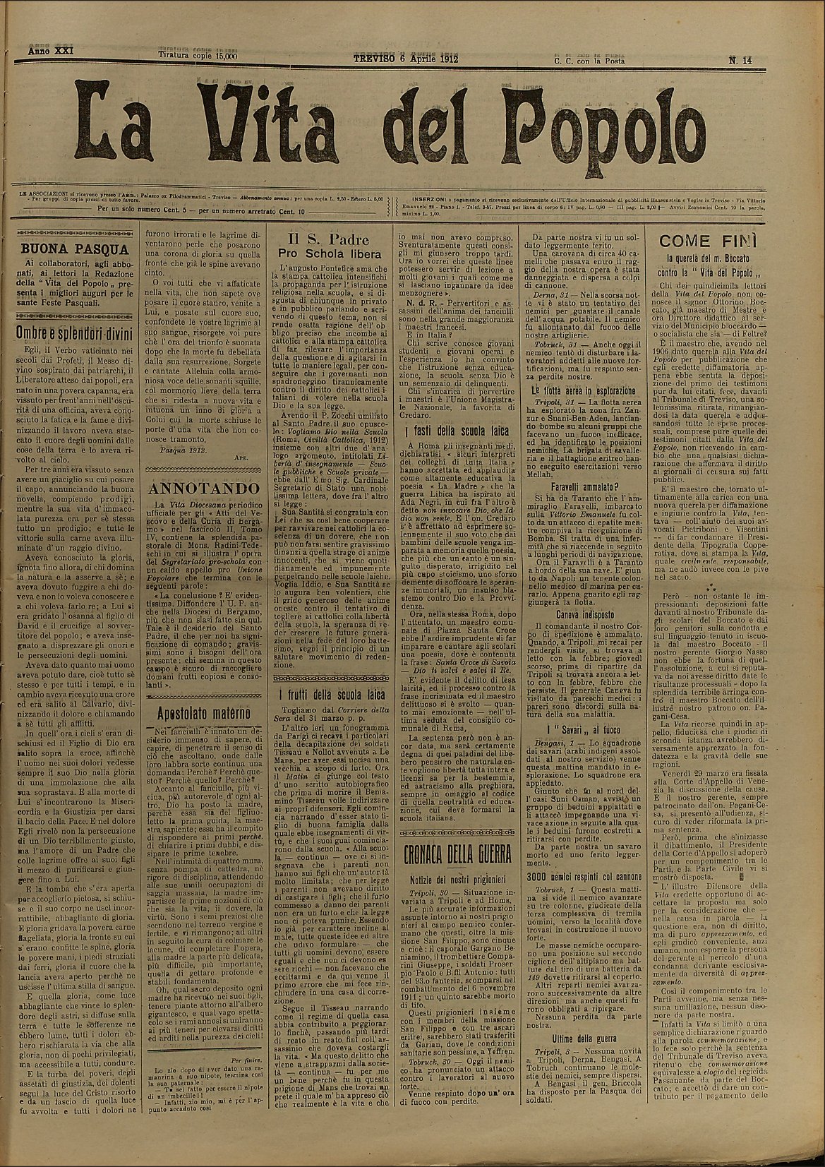 La Vita del Popolo n. 14 del 6.4.1912