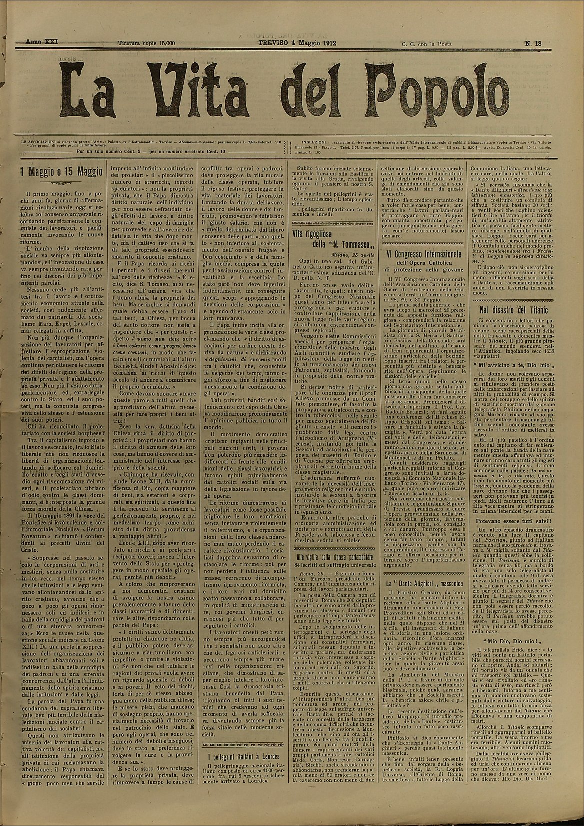 La Vita del Popolo n. 15 del 13.4.1912