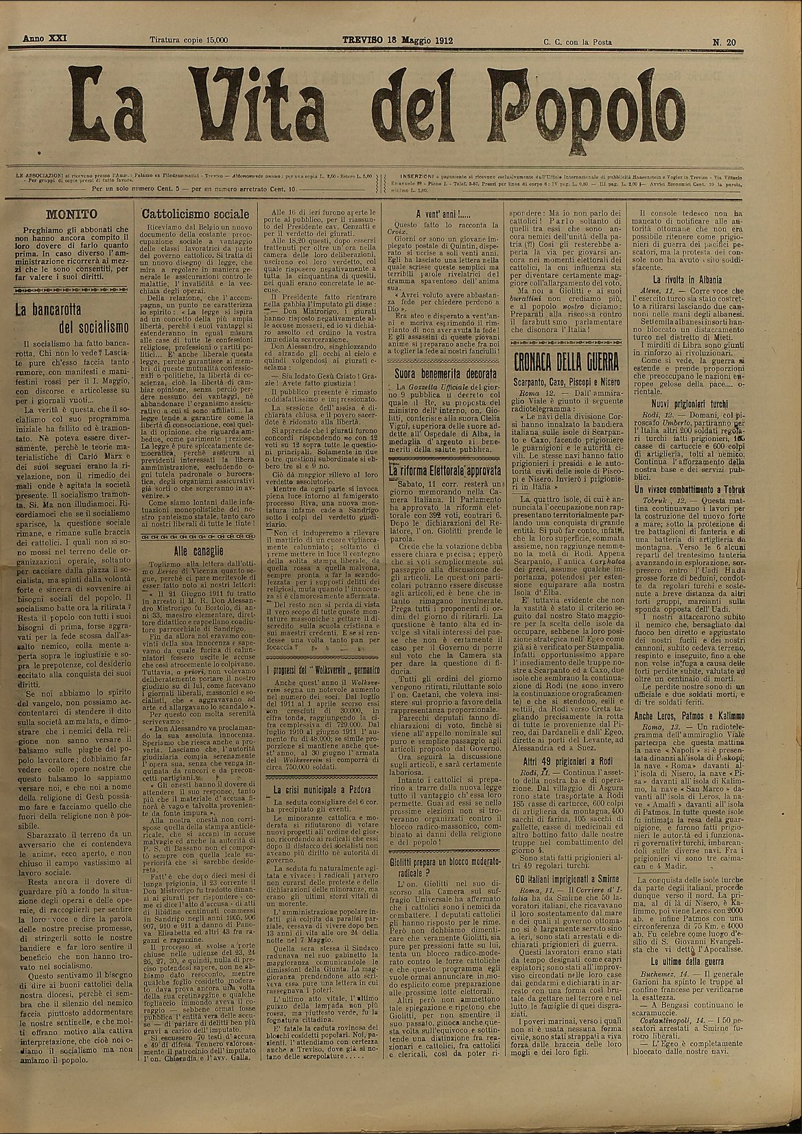 La Vita del Popolo n. 20 del 18.5.1912