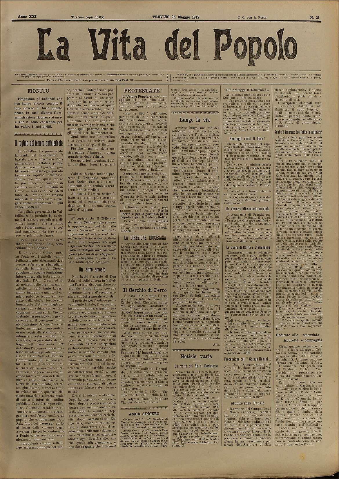 La Vita del Popolo n. 21 del 25.5.1912