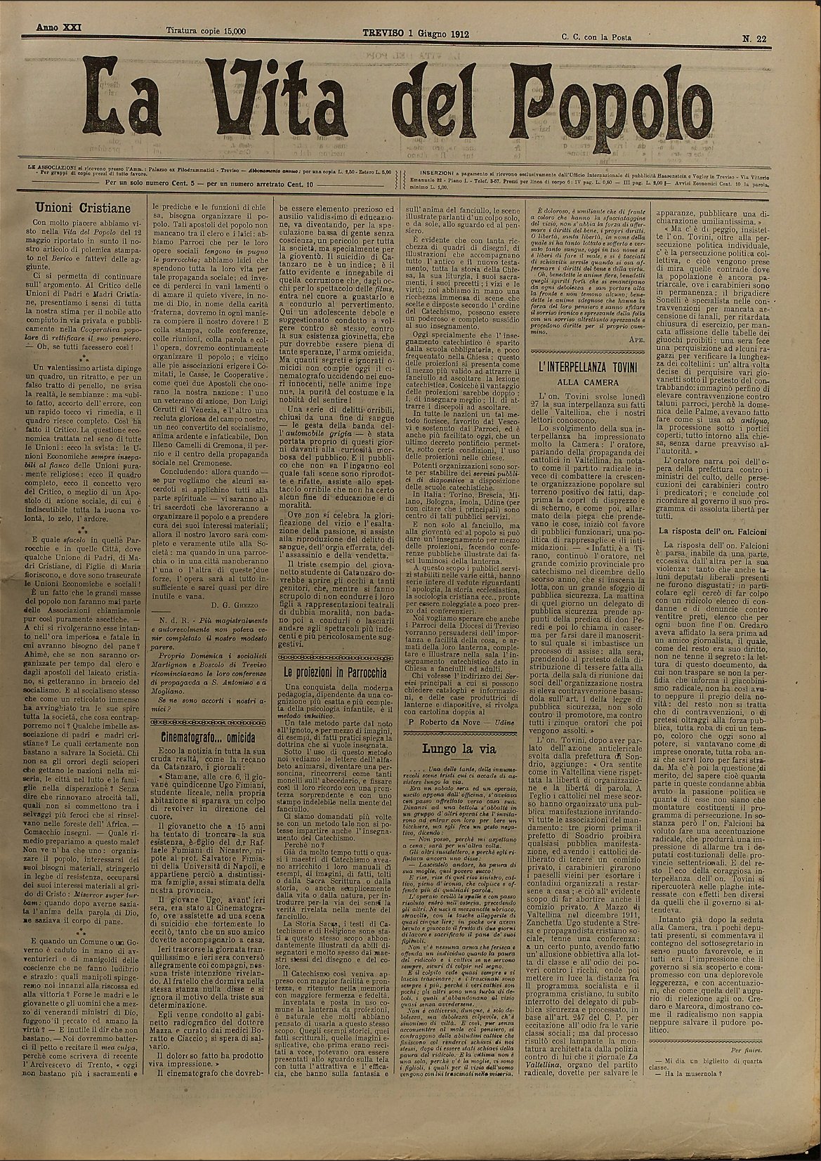 La Vita del Popolo n. 22 del 1.6.1912
