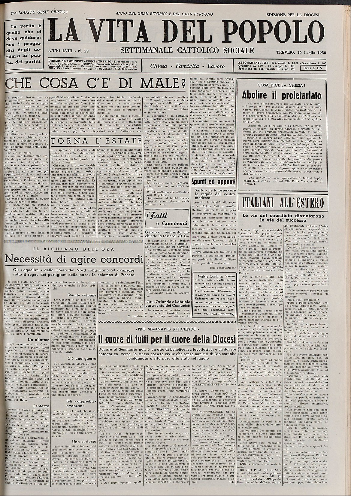 La Vita del Popolo n. 29 del 16.7.1950