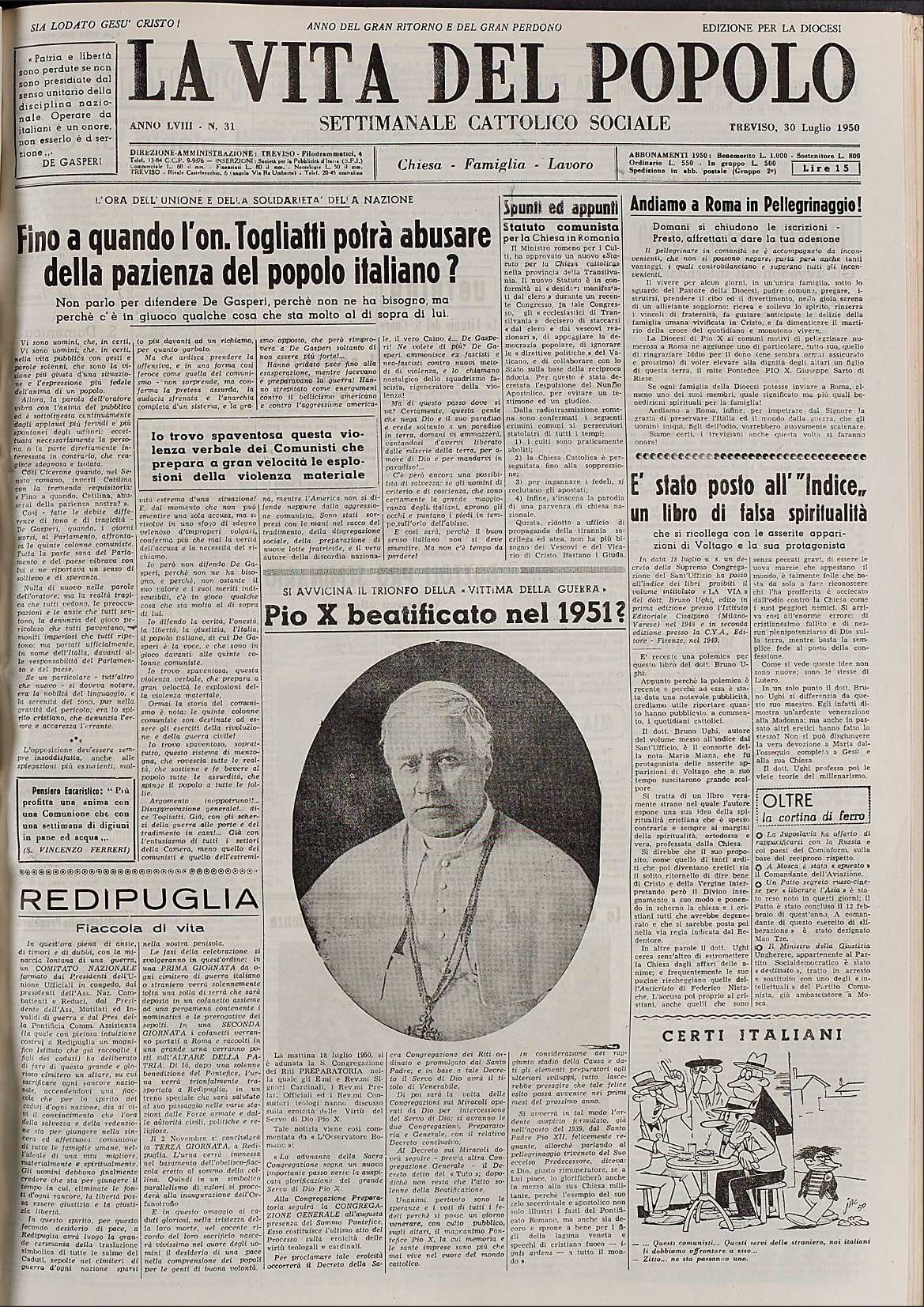 La Vita del Popolo n. 31 del 30.7.1950