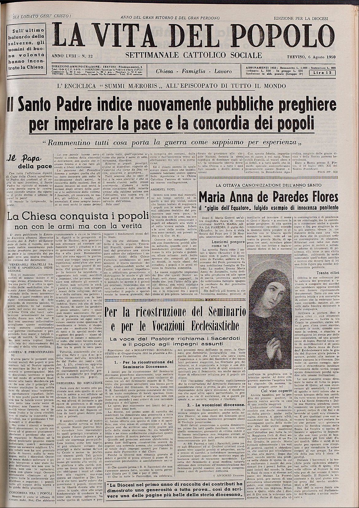La Vita del Popolo n. 32 del 6.8.1950