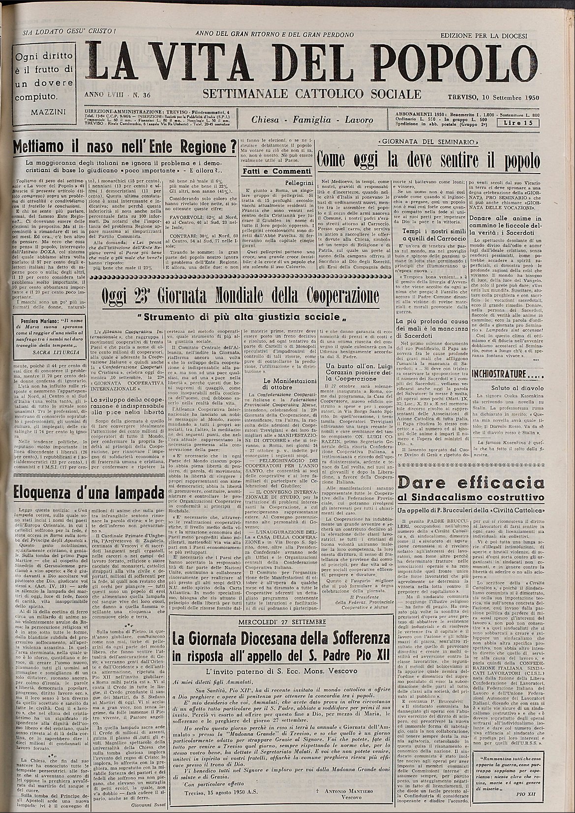 La Vita del Popolo n. 36 del 10.9.1950
