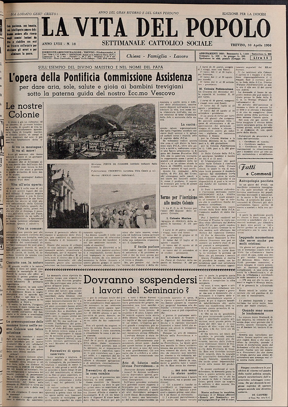 La Vita del Popolo n. 18 del 30.4.1950