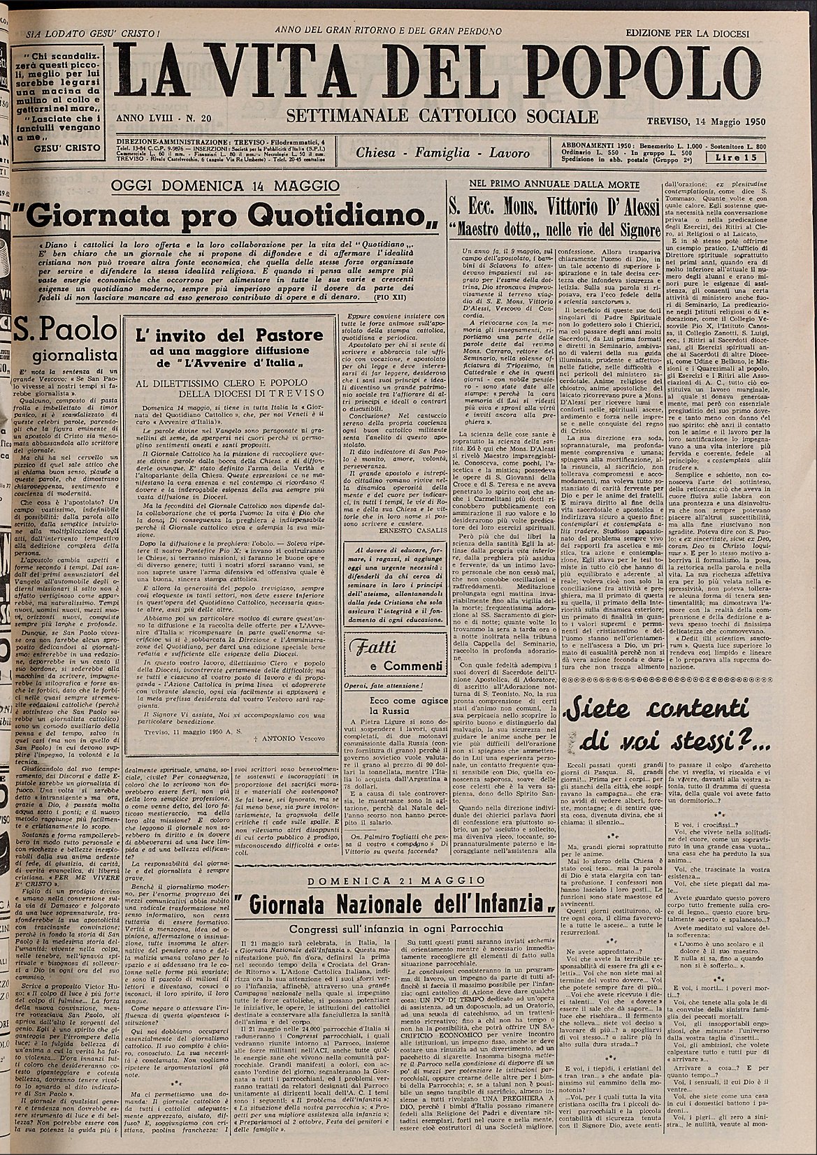 La Vita del Popolo n. 20 del 14.5.1950
