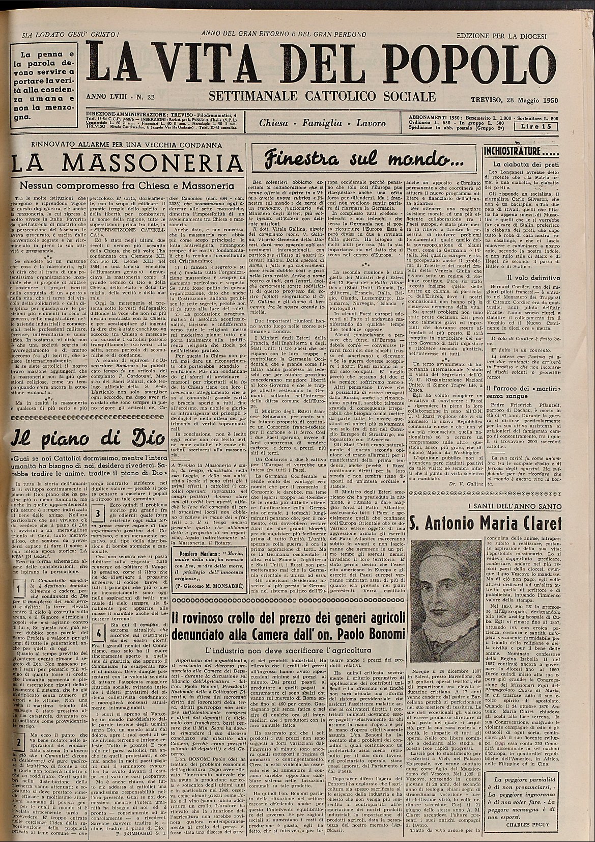 La Vita del Popolo n. 22 del 28.5.1950
