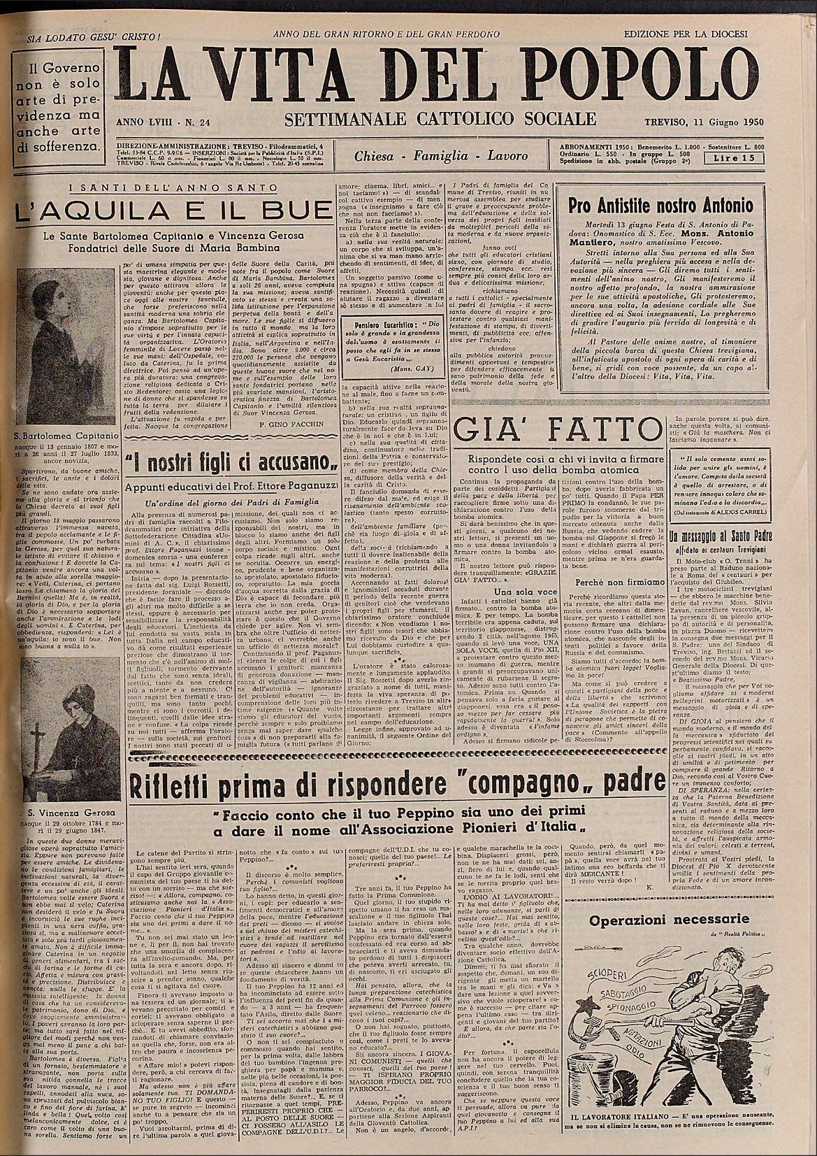 La Vita del Popolo n. 24 del 11.6.1950