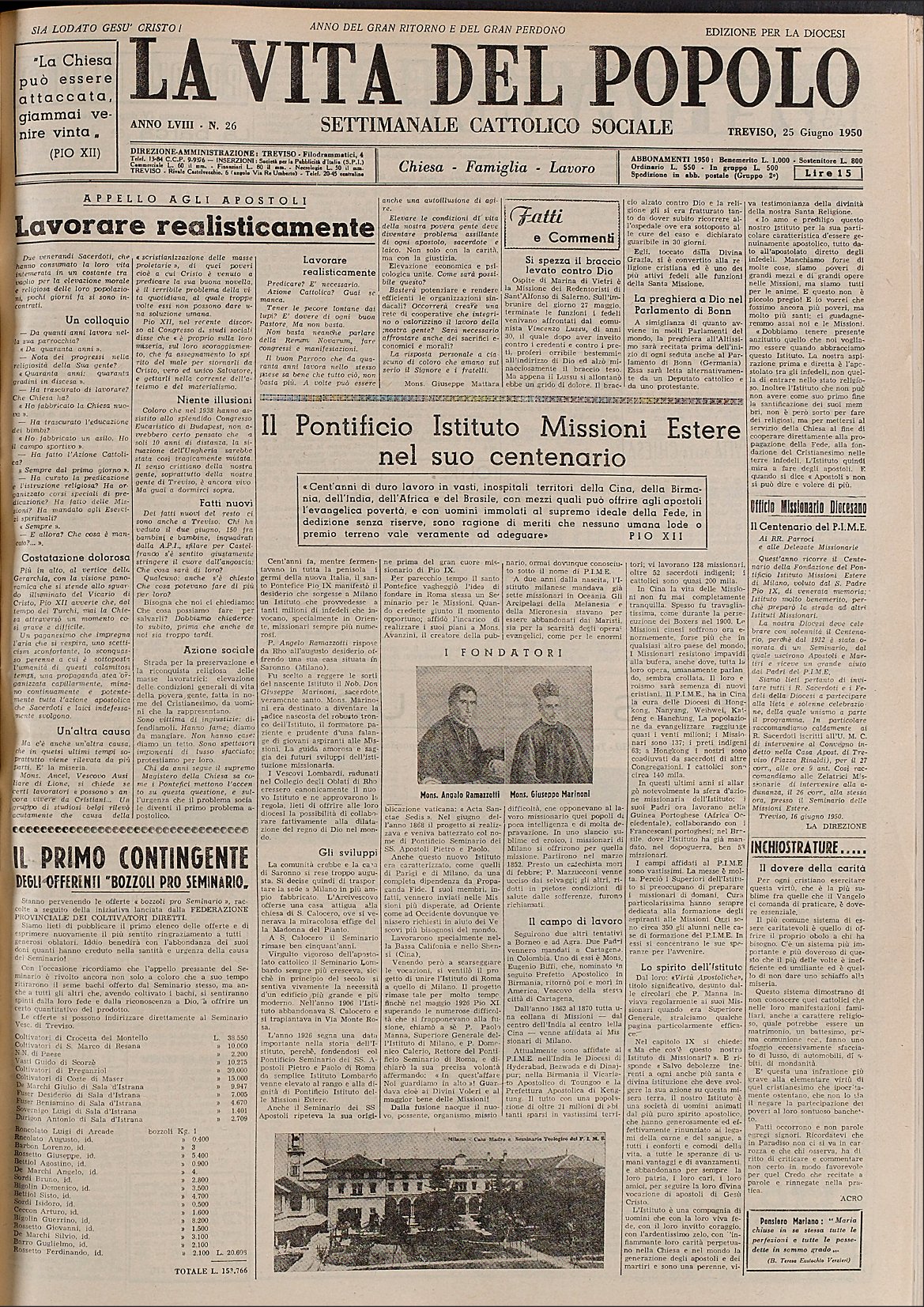 La Vita del Popolo n. 26 del 25.6.1950