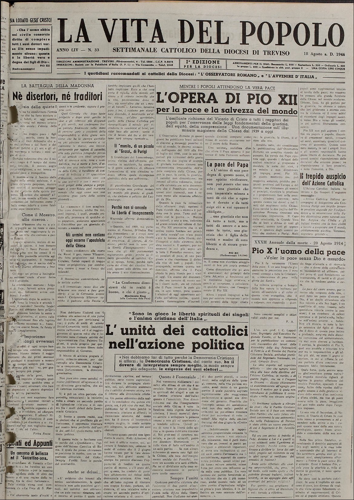 La Vita del Popolo n. 33 del 18.8.1946