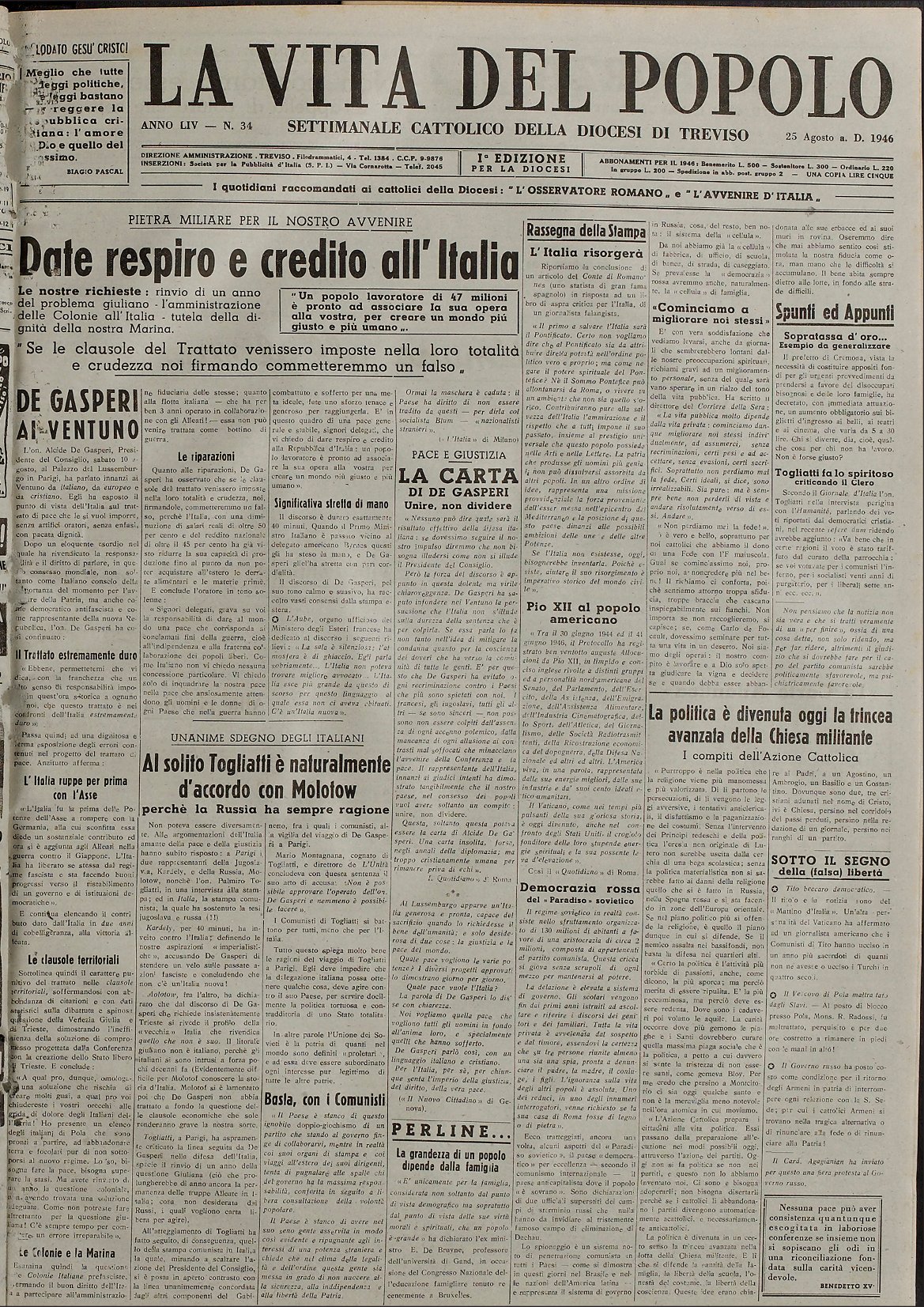 La Vita del Popolo n. 34 del 25.8.1946