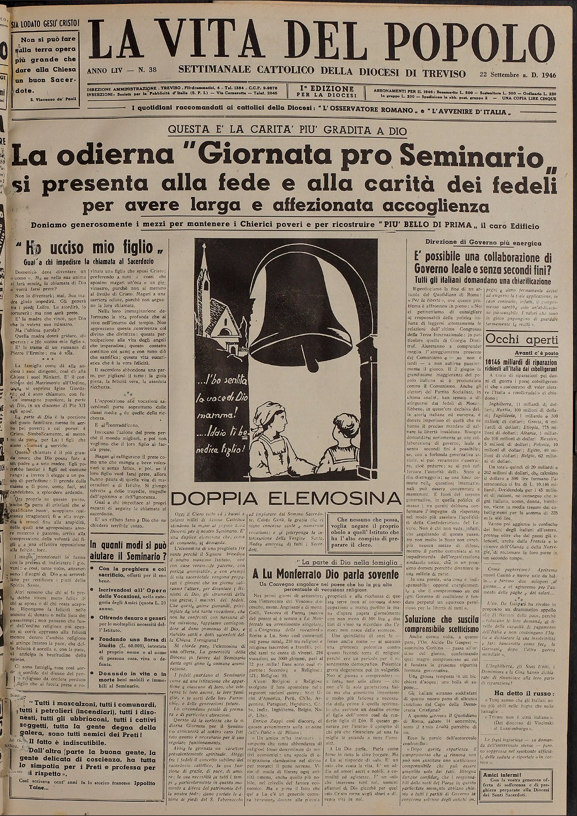 La Vita del Popolo n. 38 del 22.9.1946