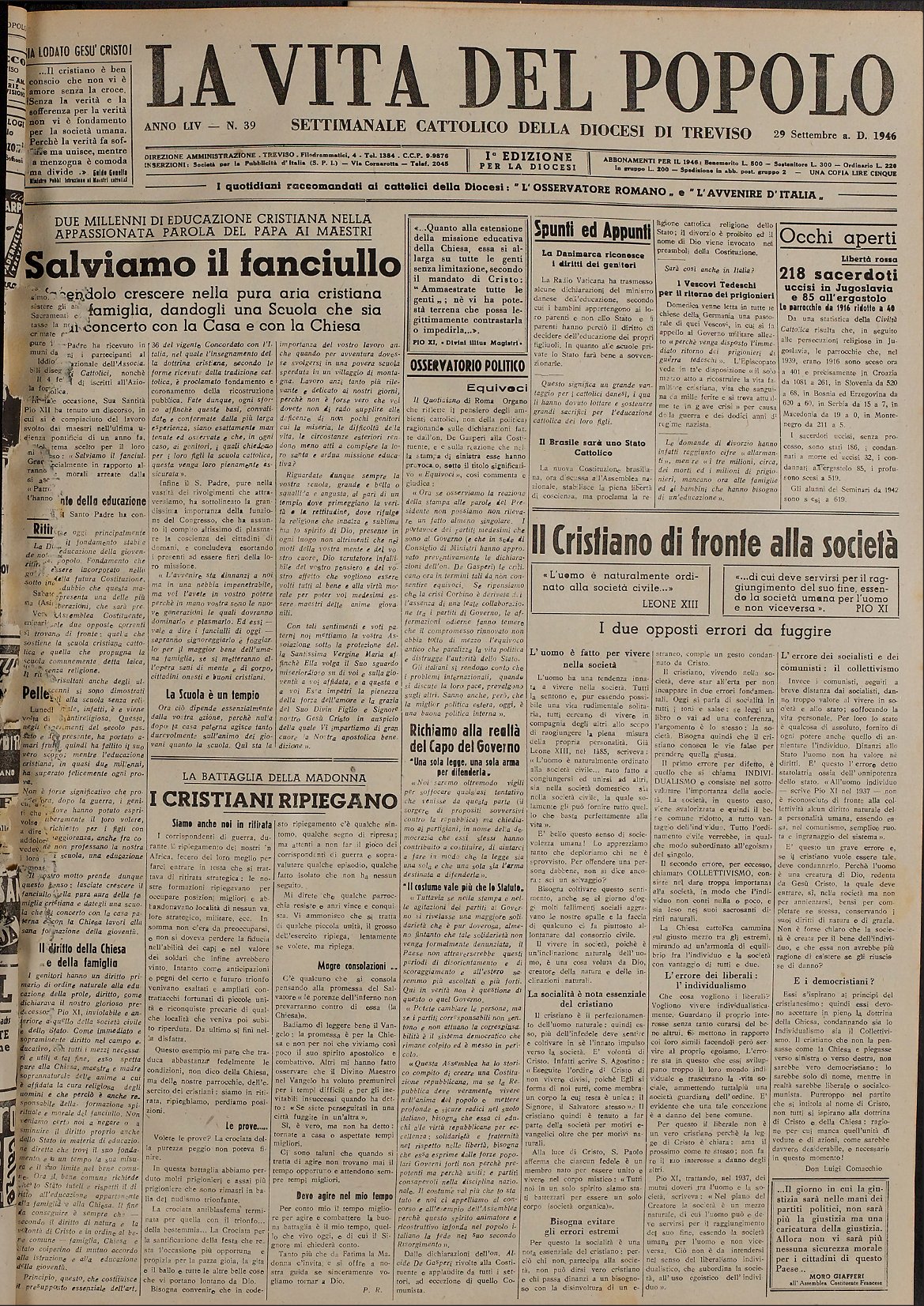 La Vita del Popolo n. 39 del 29.9.1946