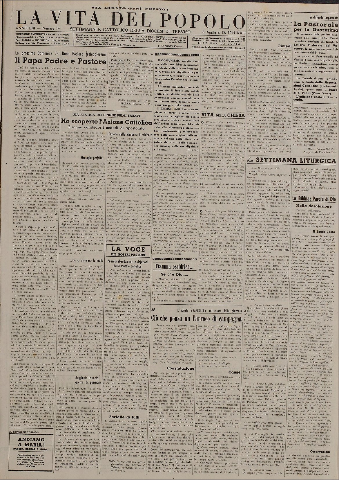 La Vita del Popolo n. 14 del 8.4.1945
