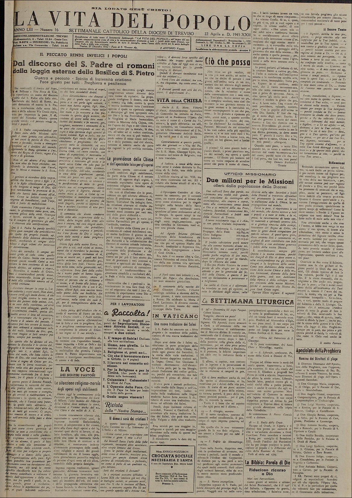 La Vita del Popolo n. 16 del 22.4.1945