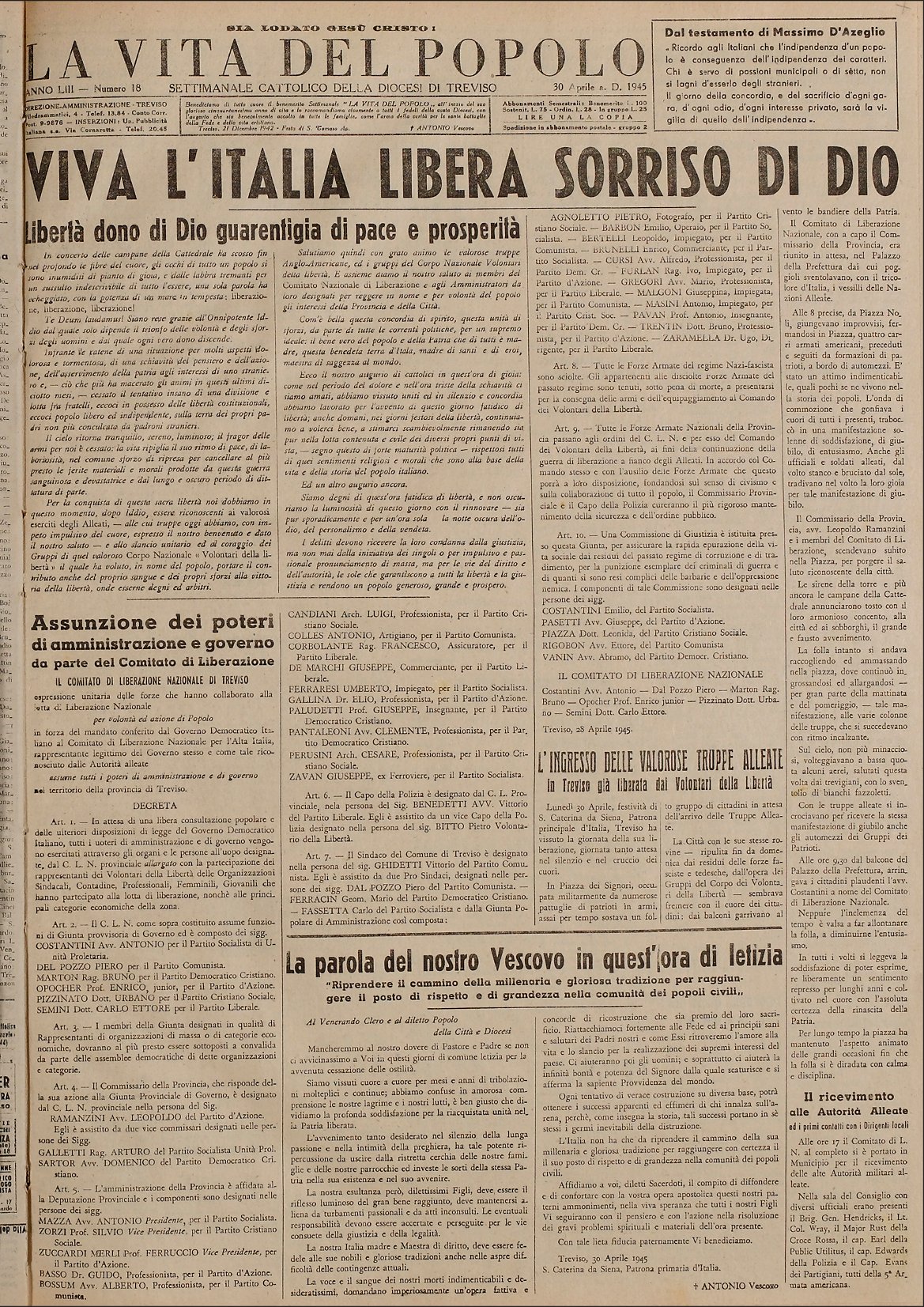 La Vita del Popolo n. 18 del 30.4.1945