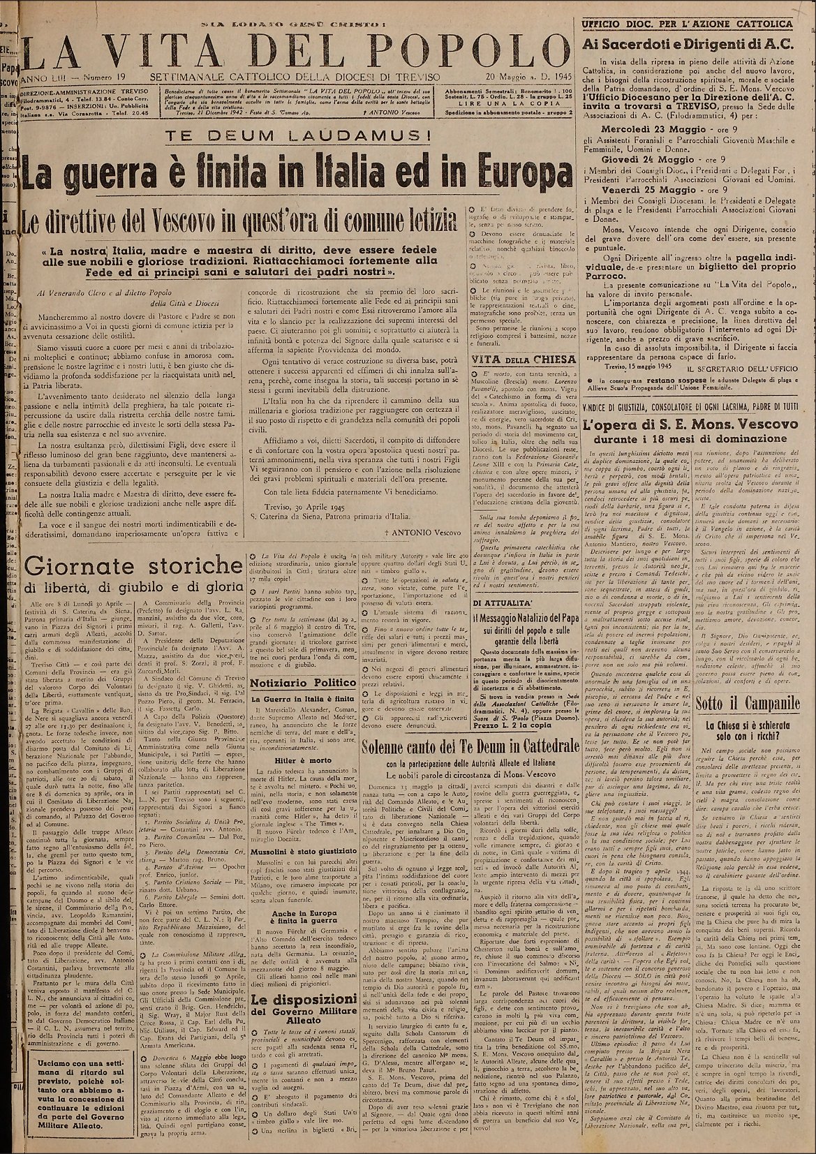 La Vita del Popolo n. 19 del 20.5.1945