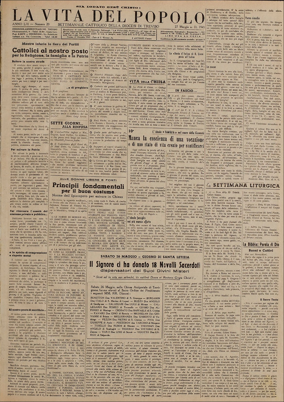 La Vita del Popolo n. 20 del 27.5.1945