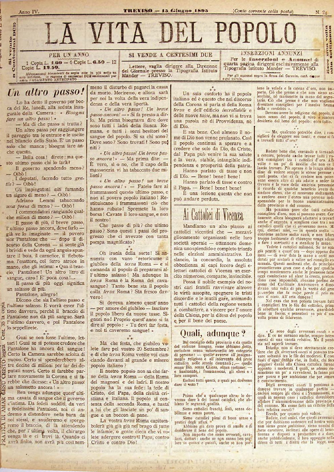 La Vita del Popolo n. 24 del 15.6.1895