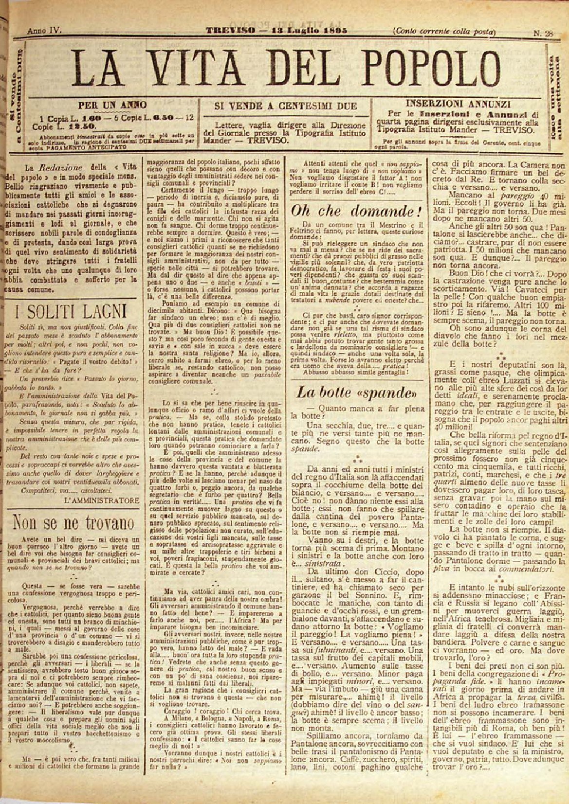 La Vita del Popolo n. 28 del 13.7.1895