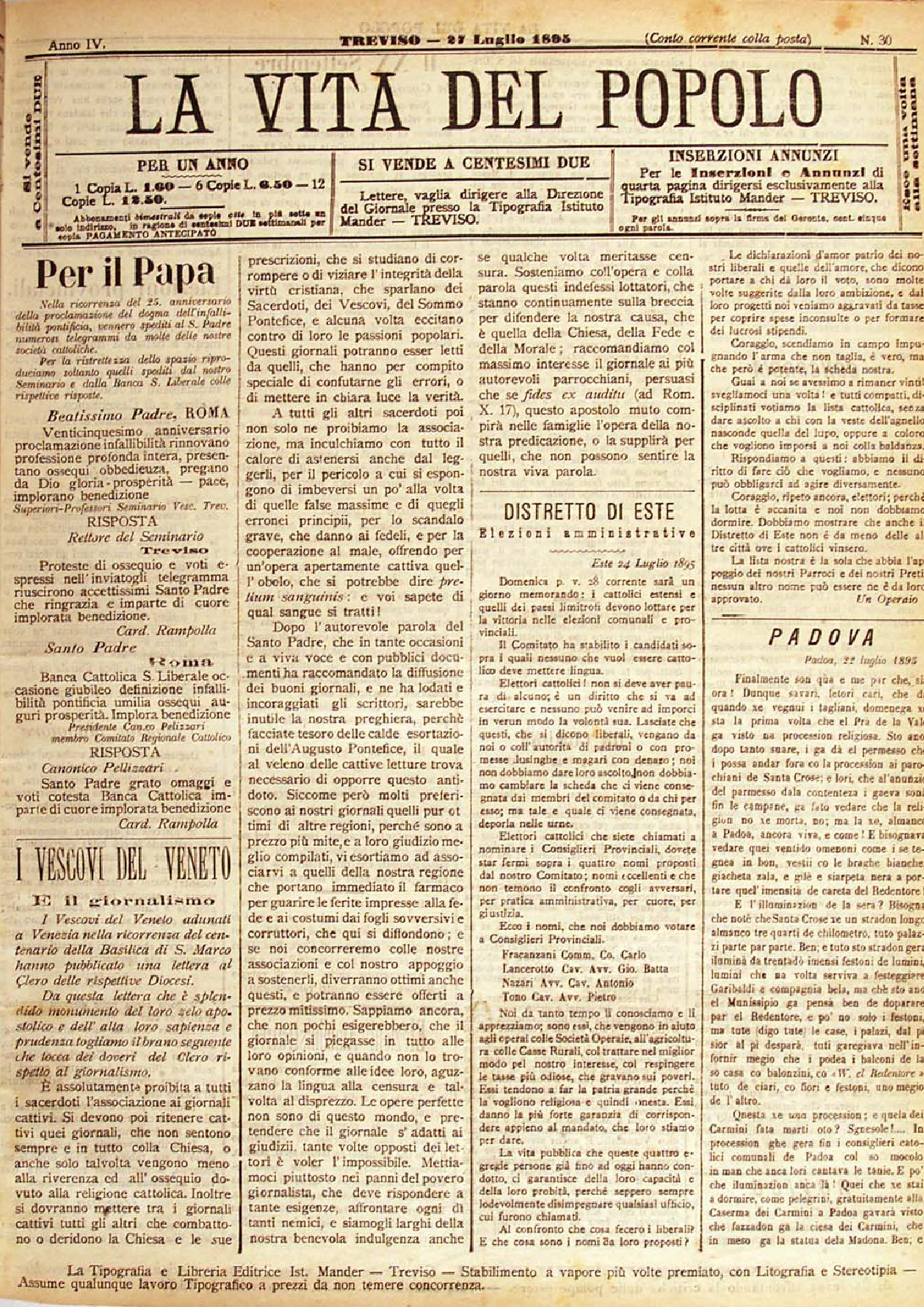 La Vita del Popolo n. 30 del 27.7.1895