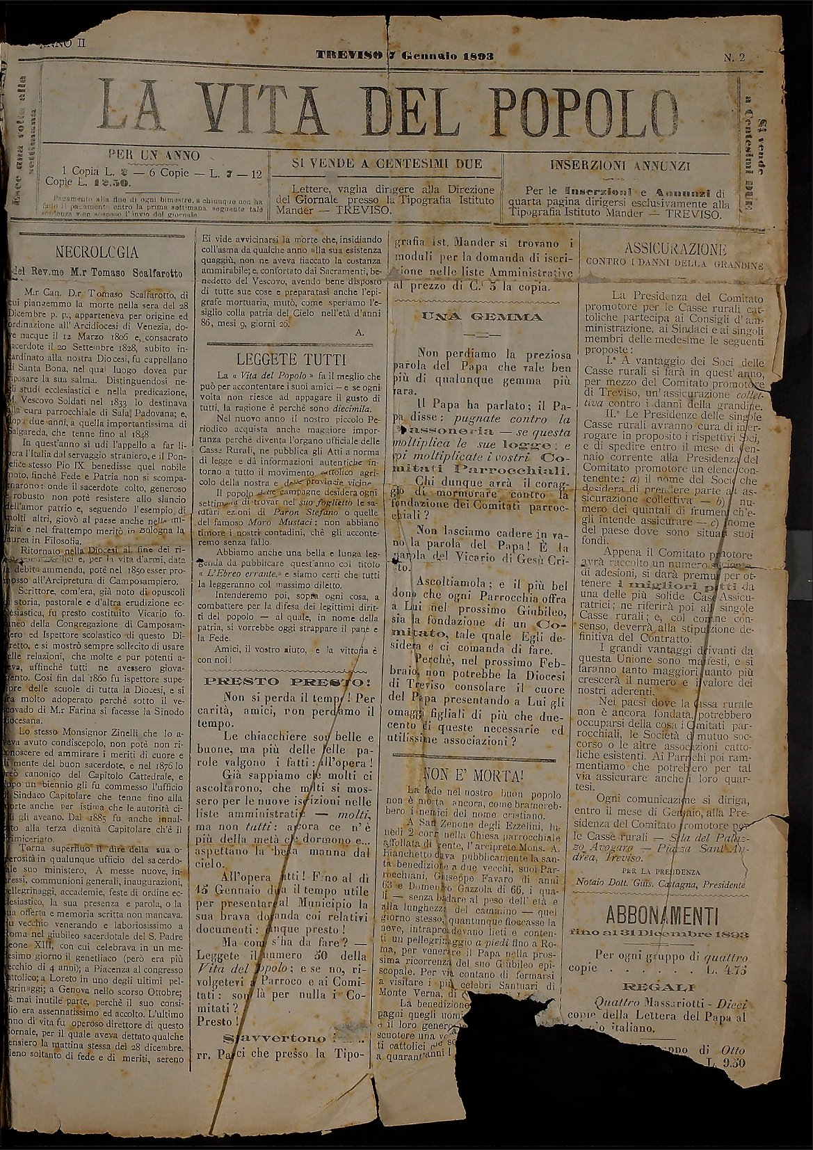 La Vita del Popolo n. 2 del 7.1.1893