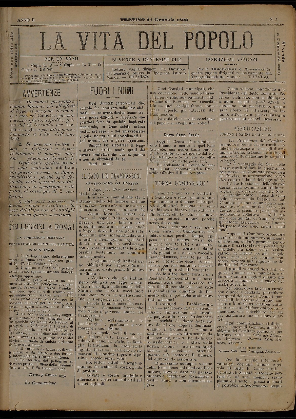 La Vita del Popolo n. 3 del 14.1.1893