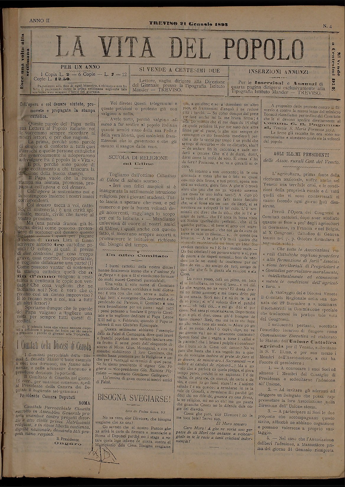 La Vita del Popolo n. 4 del 21.1.1893