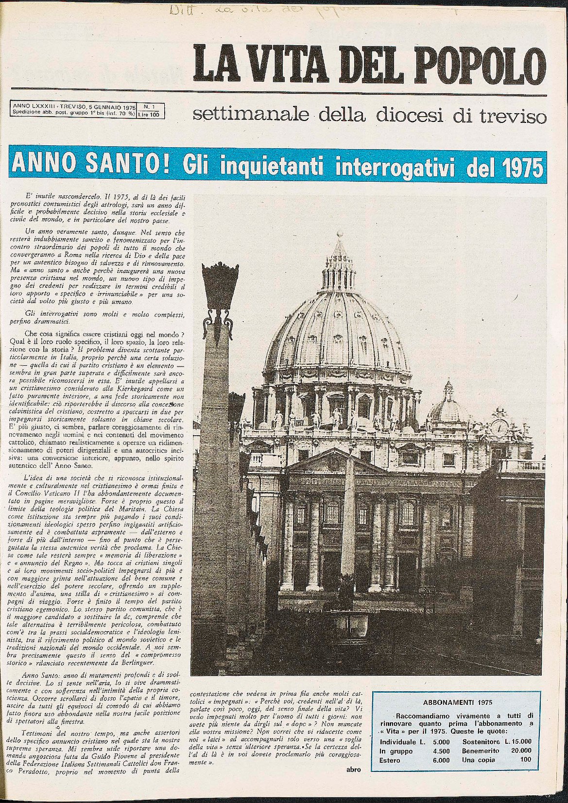 La Vita del Popolo n. 10 del 9.3.1975