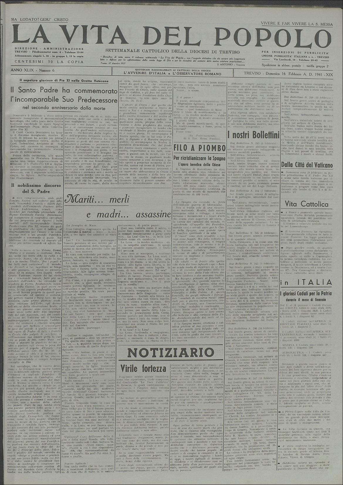 La Vita del Popolo n. 12 del 30.3.1941