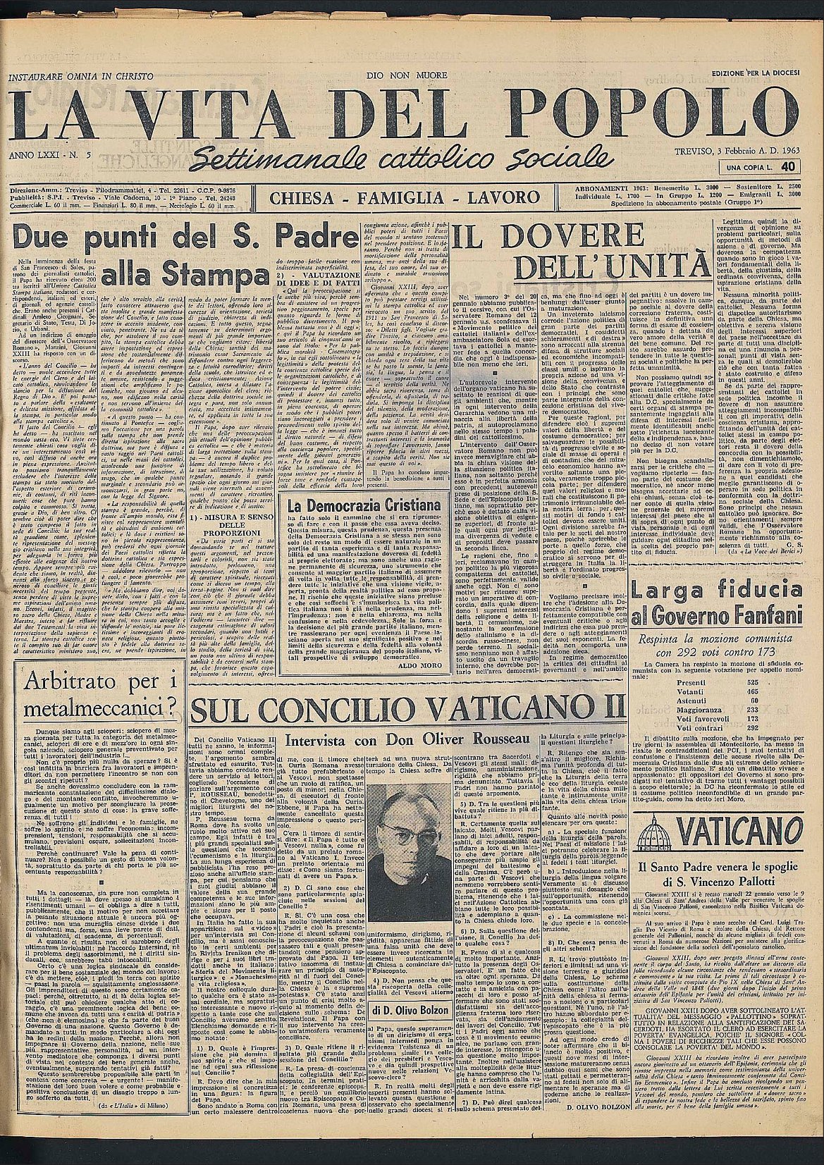 La Vita del Popolo n. 15 del 14.4.1963