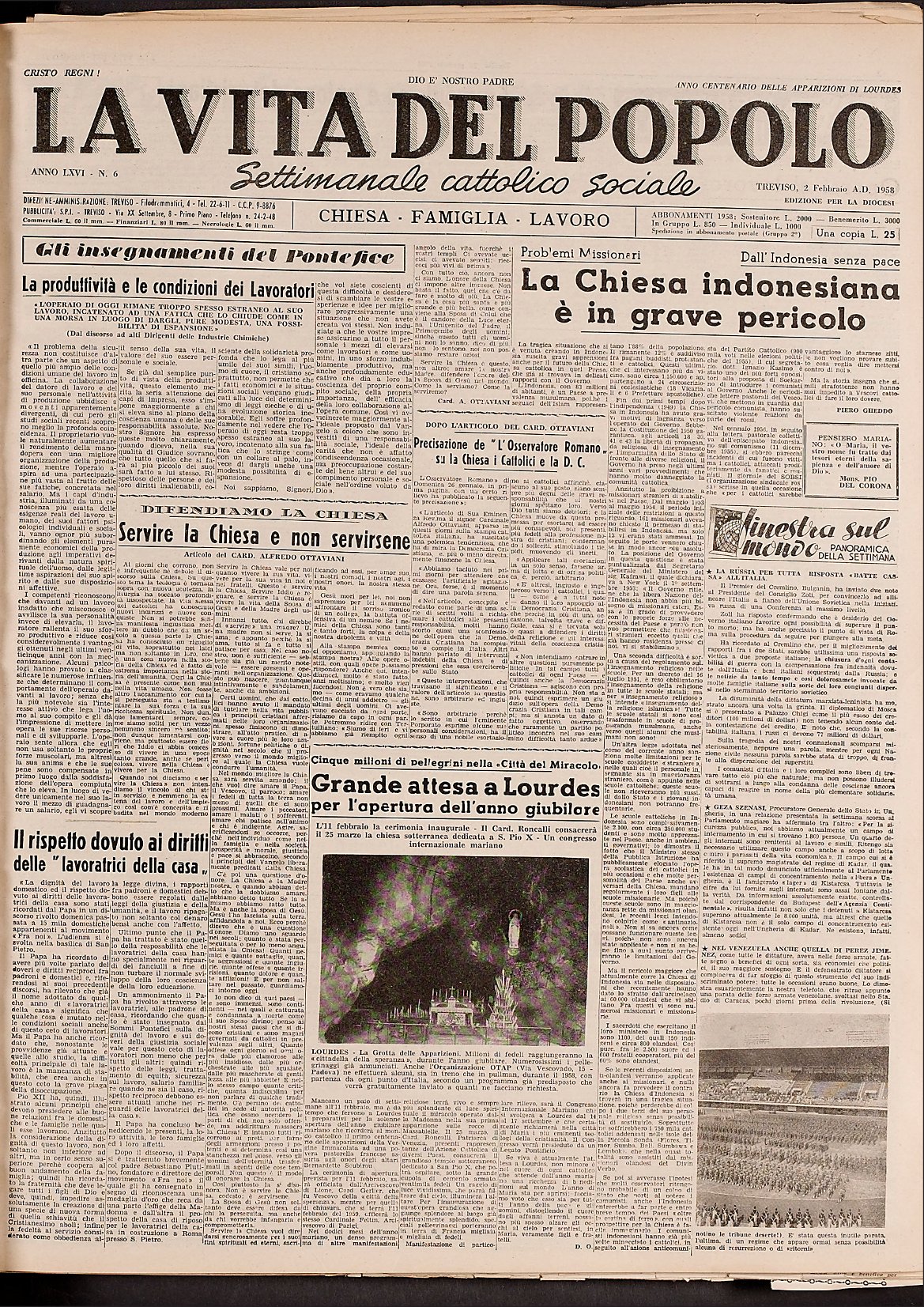 La Vita del Popolo n. 15 del 6.4.1958