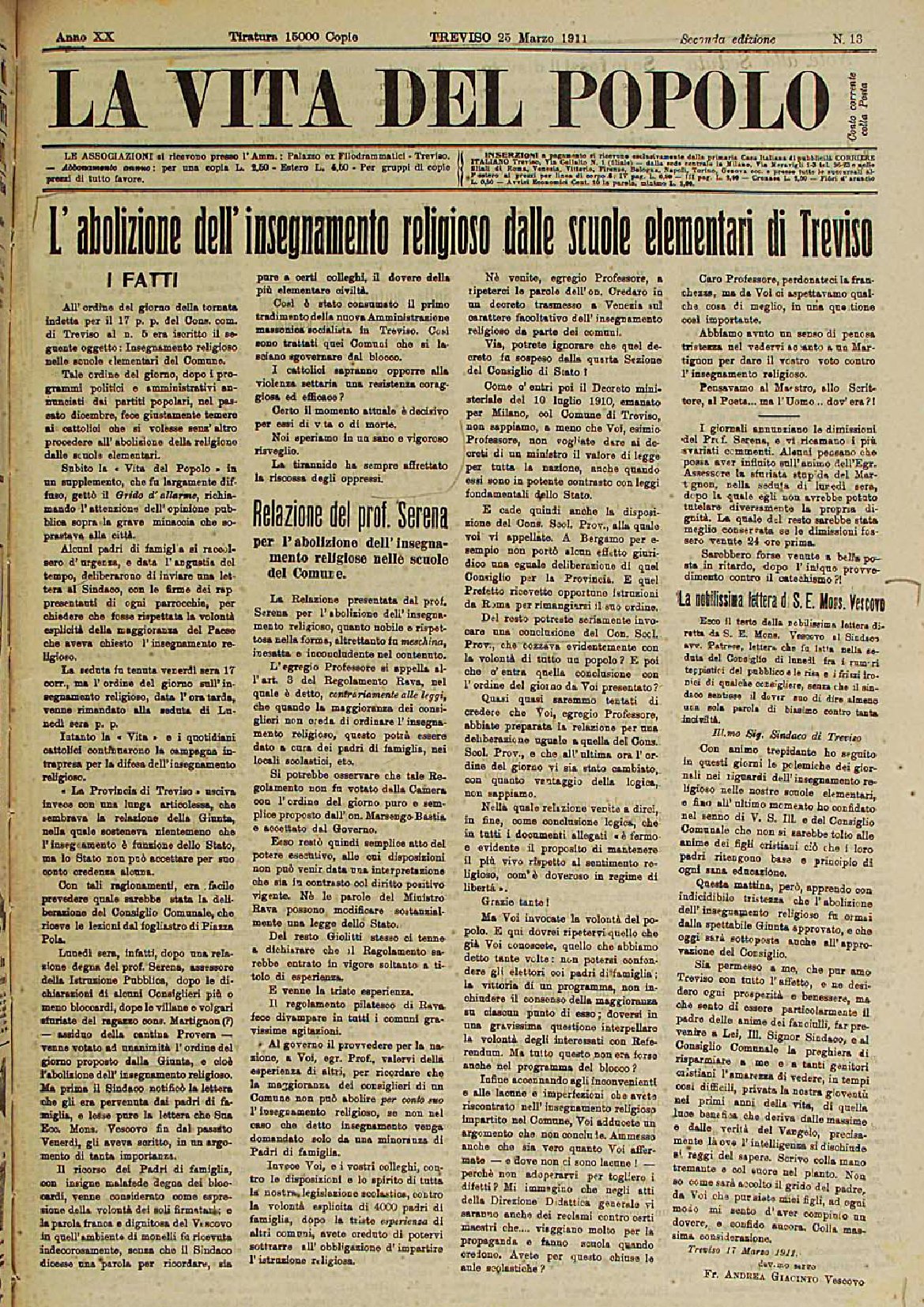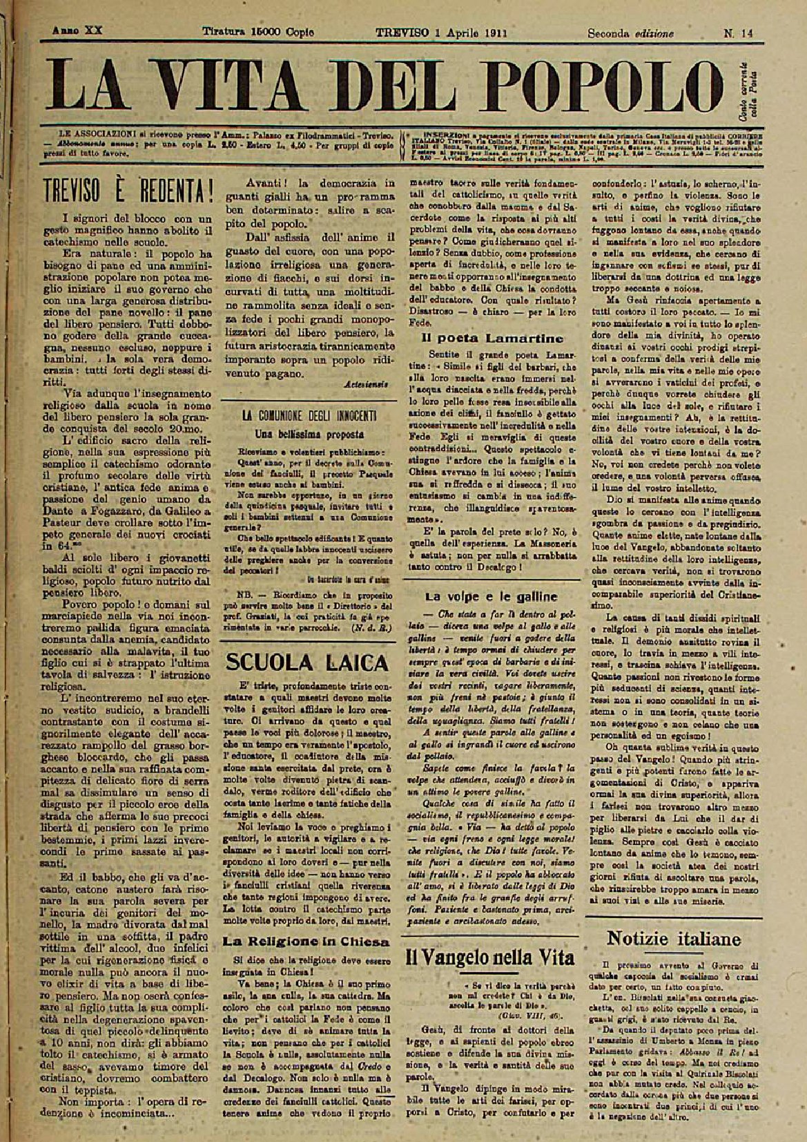 La Vita del Popolo n. 23 del 03.6.1911
