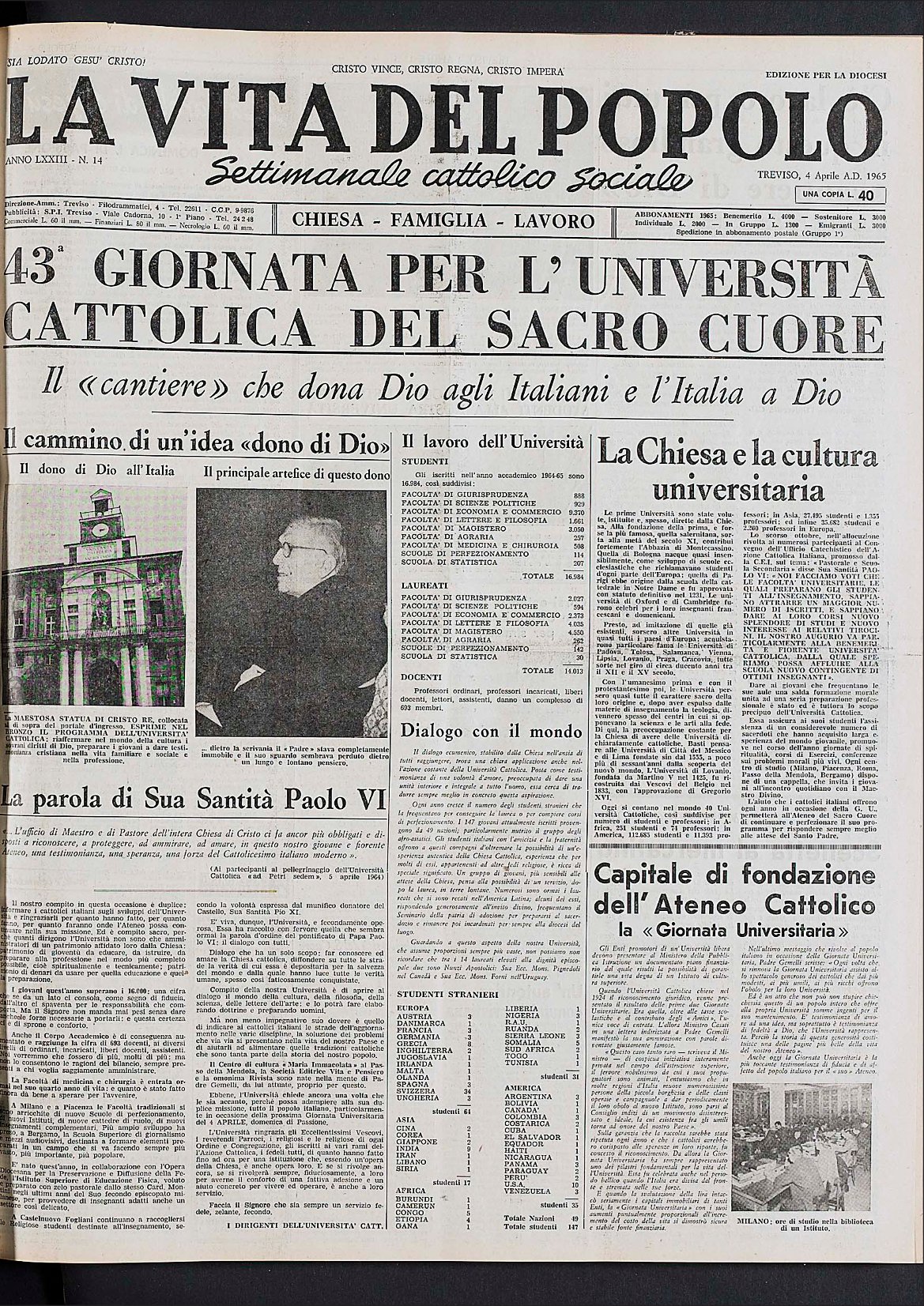 La Vita del Popolo n. 24 del 13.6.1965