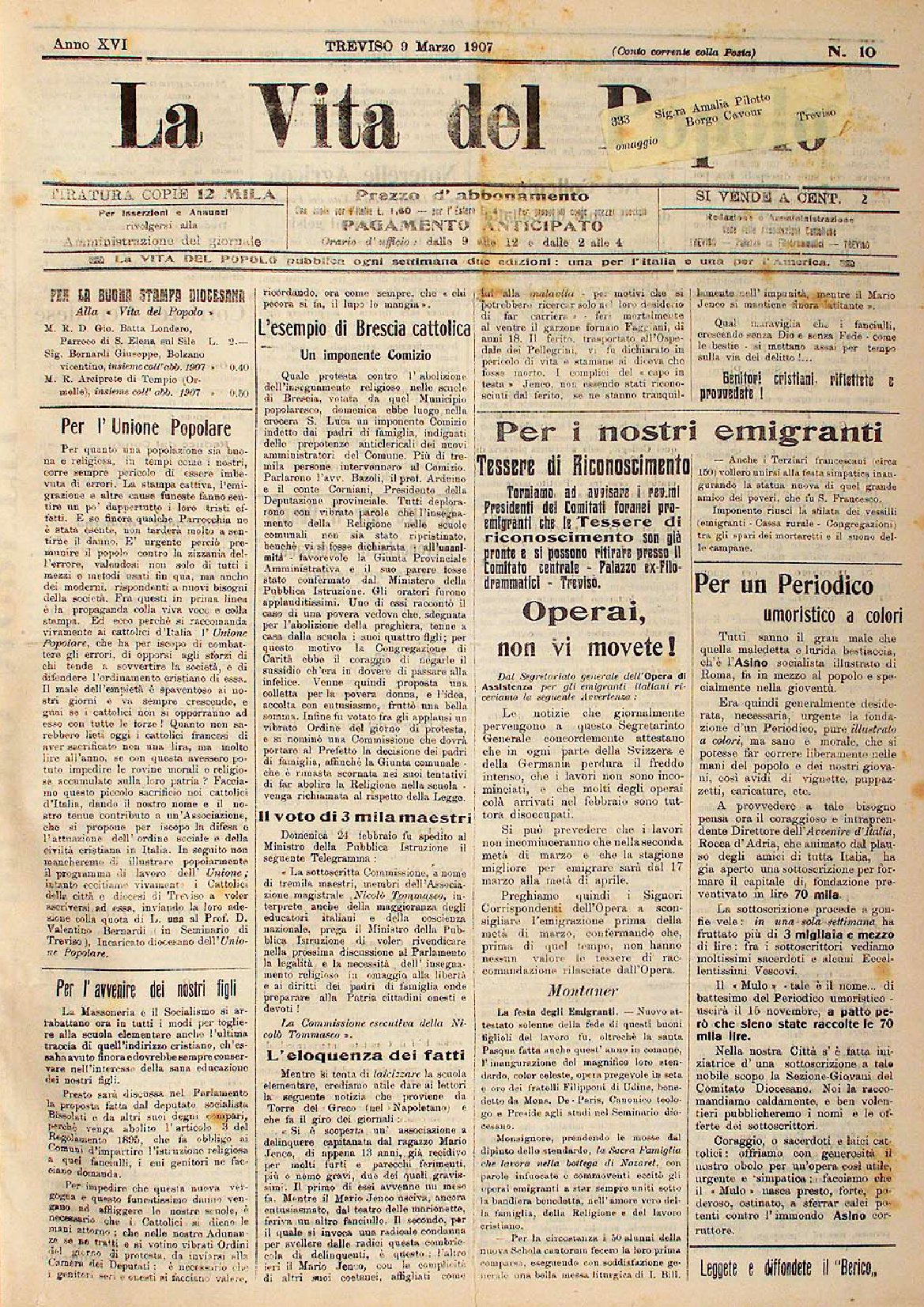 La Vita del Popolo n. 25 del 22.6.1907