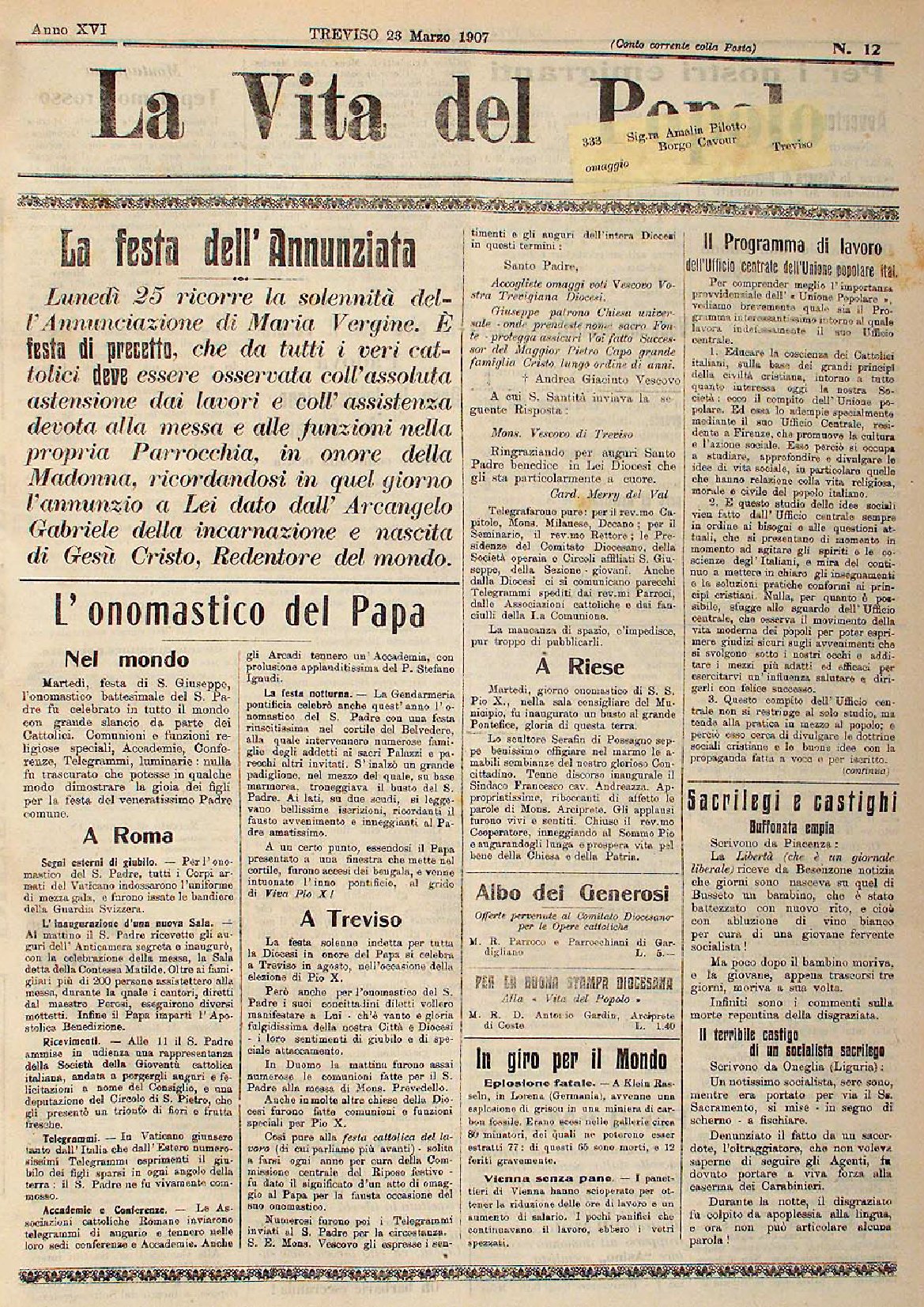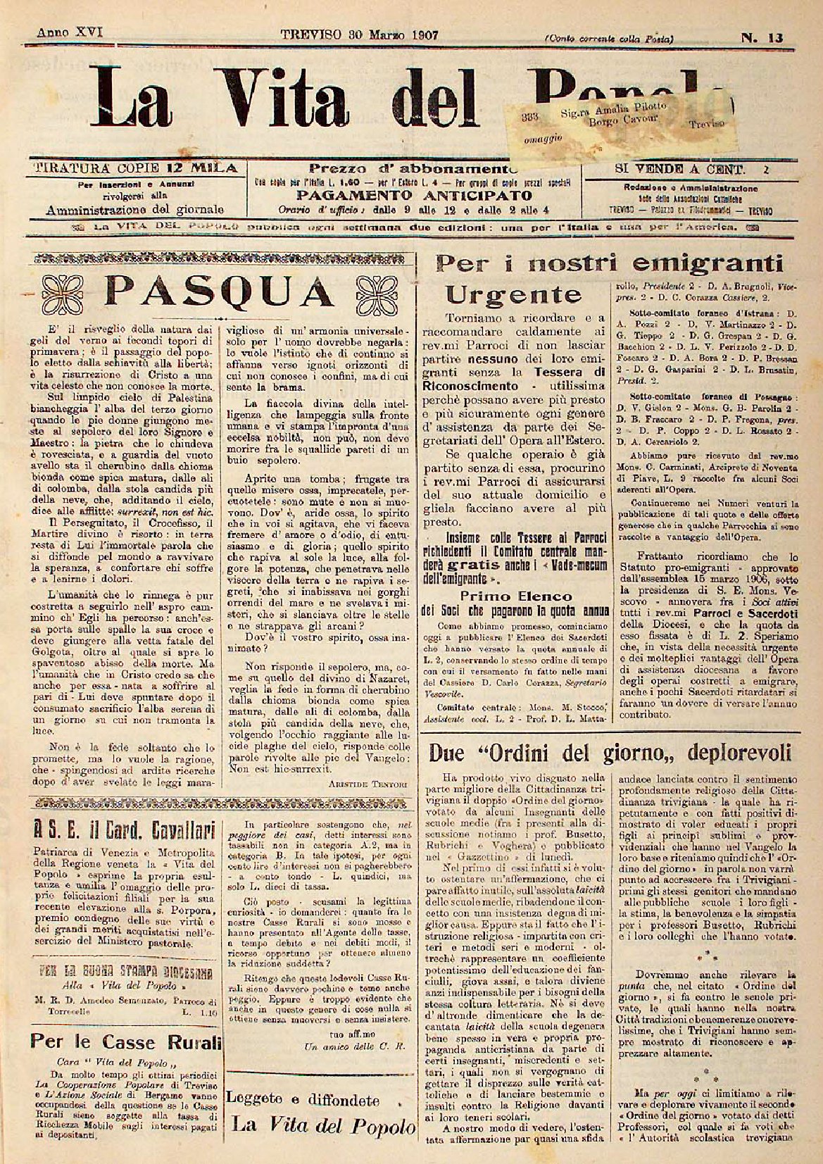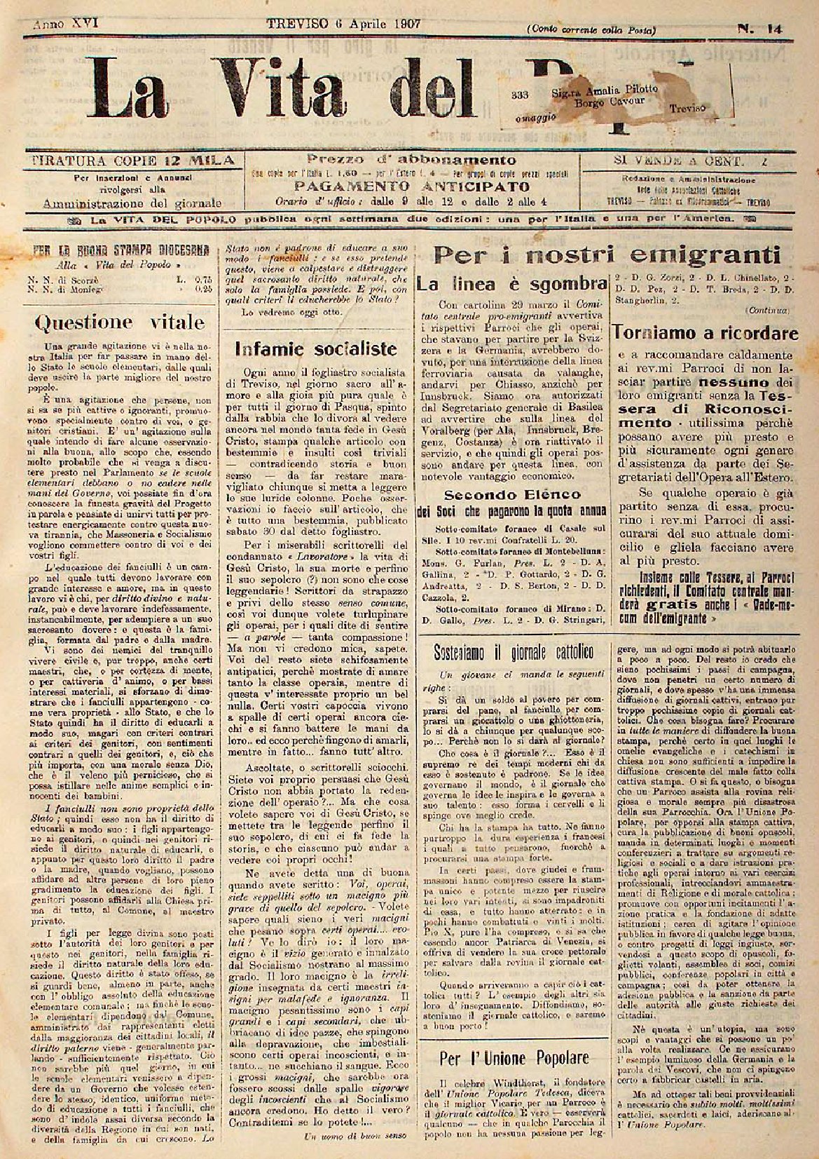 La Vita del Popolo n. 27 del 6.7.1907