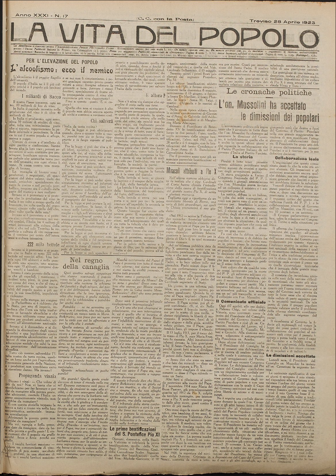 La Vita del Popolo n. 27 del 7.7.1923