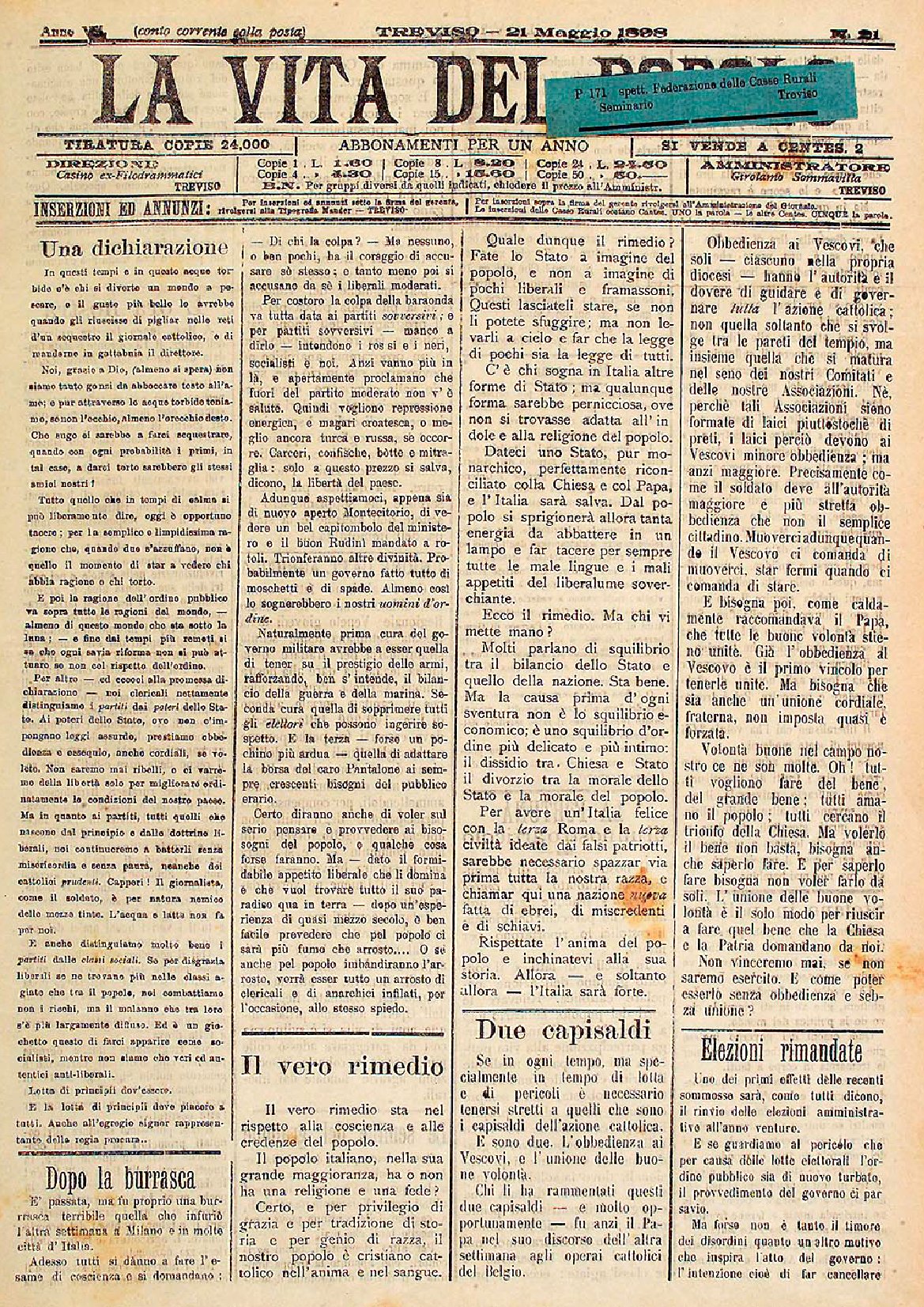 La Vita del Popolo n. 30 del 15.10.1898