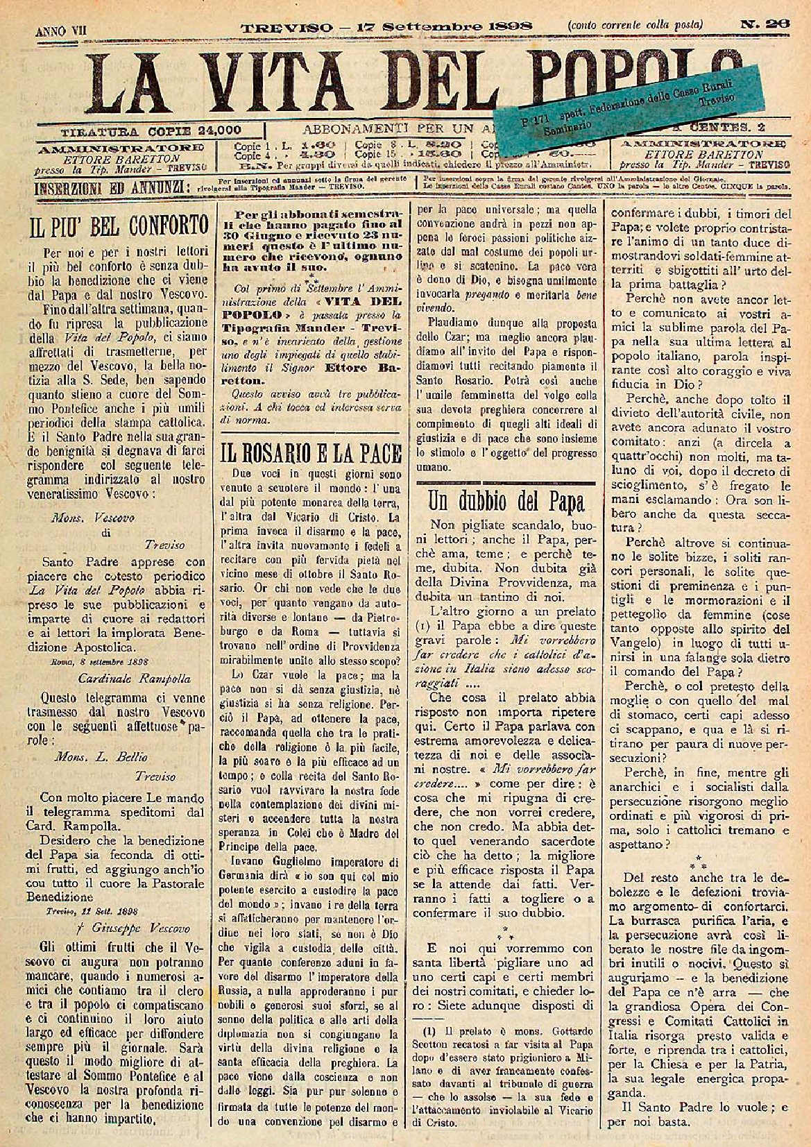 La Vita del Popolo n. 35 del 19.11.1898