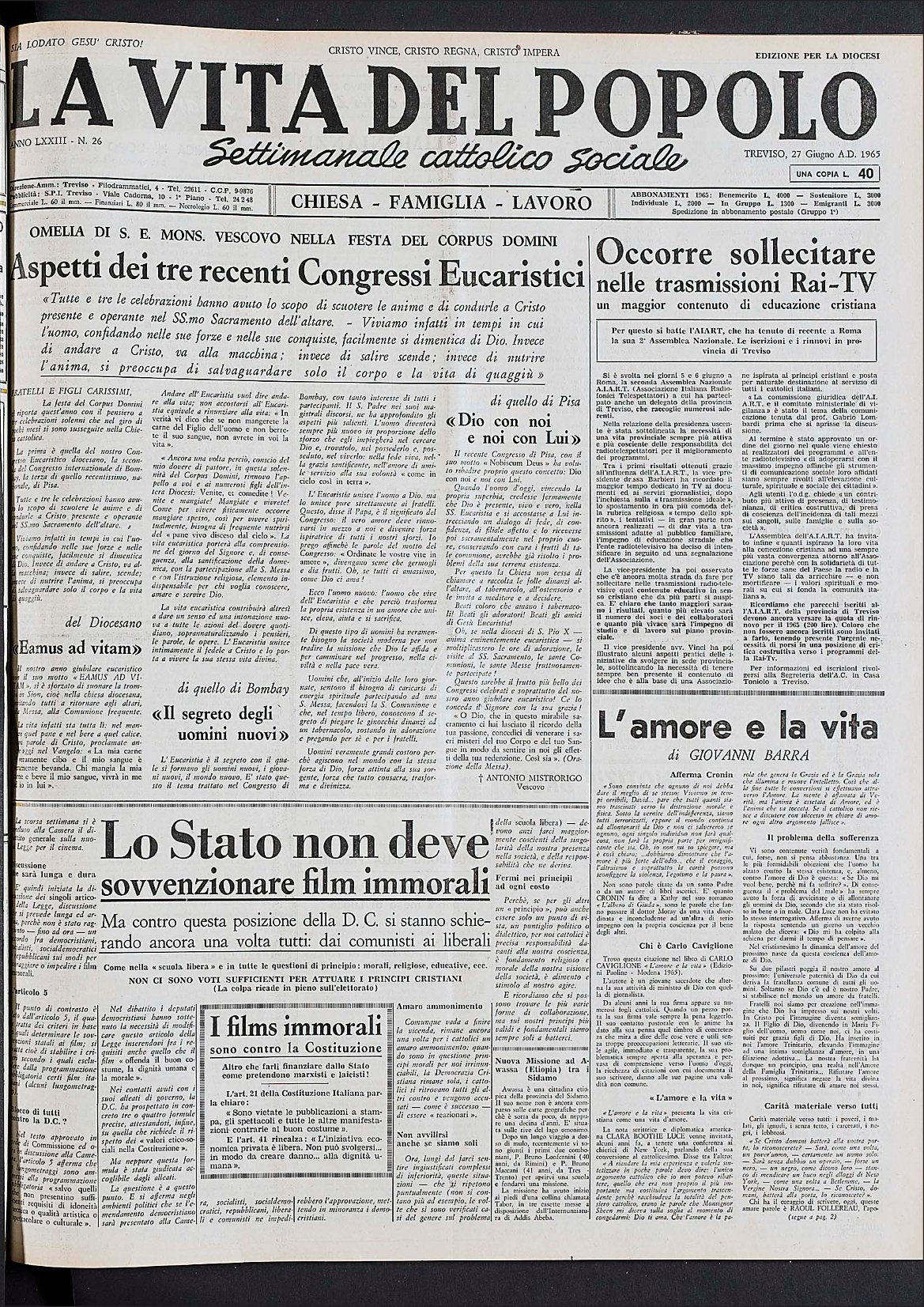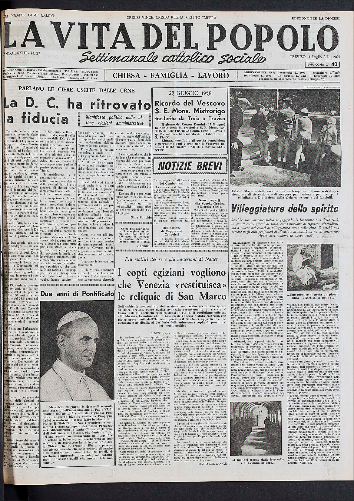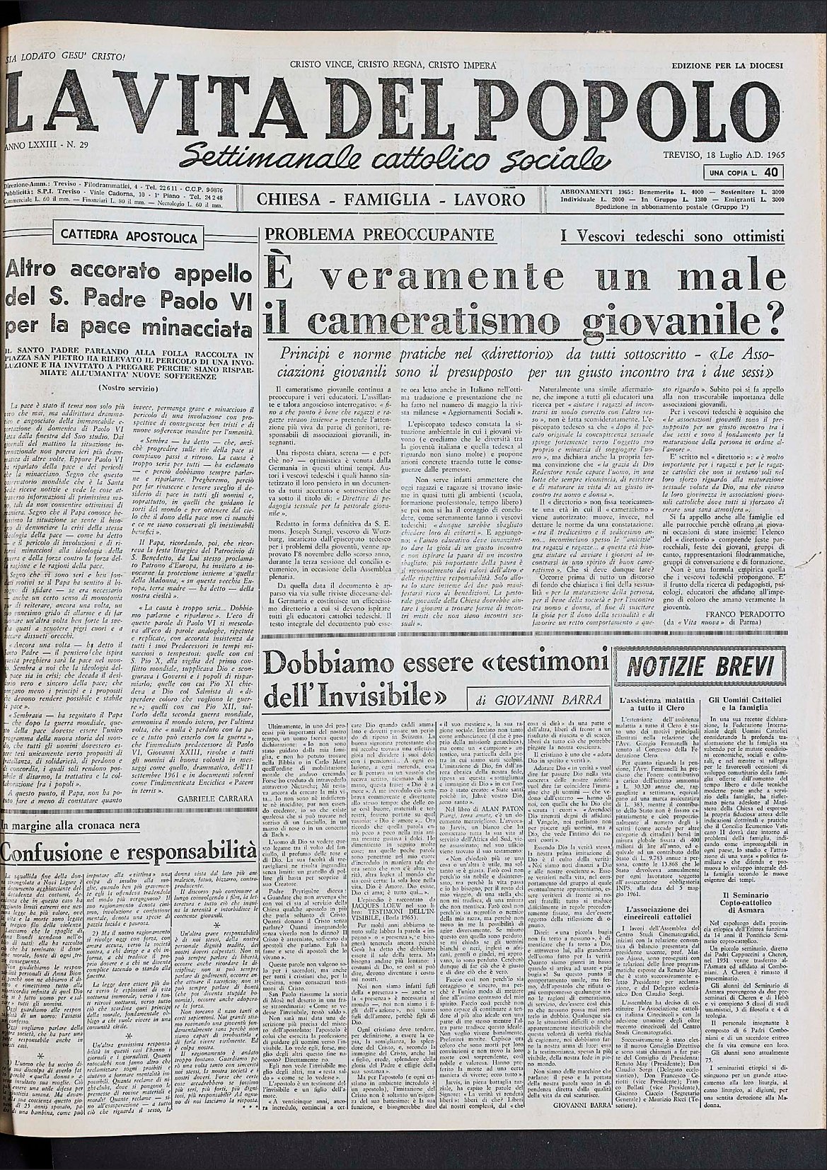 La Vita del Popolo n. 36 del 12.9.1965