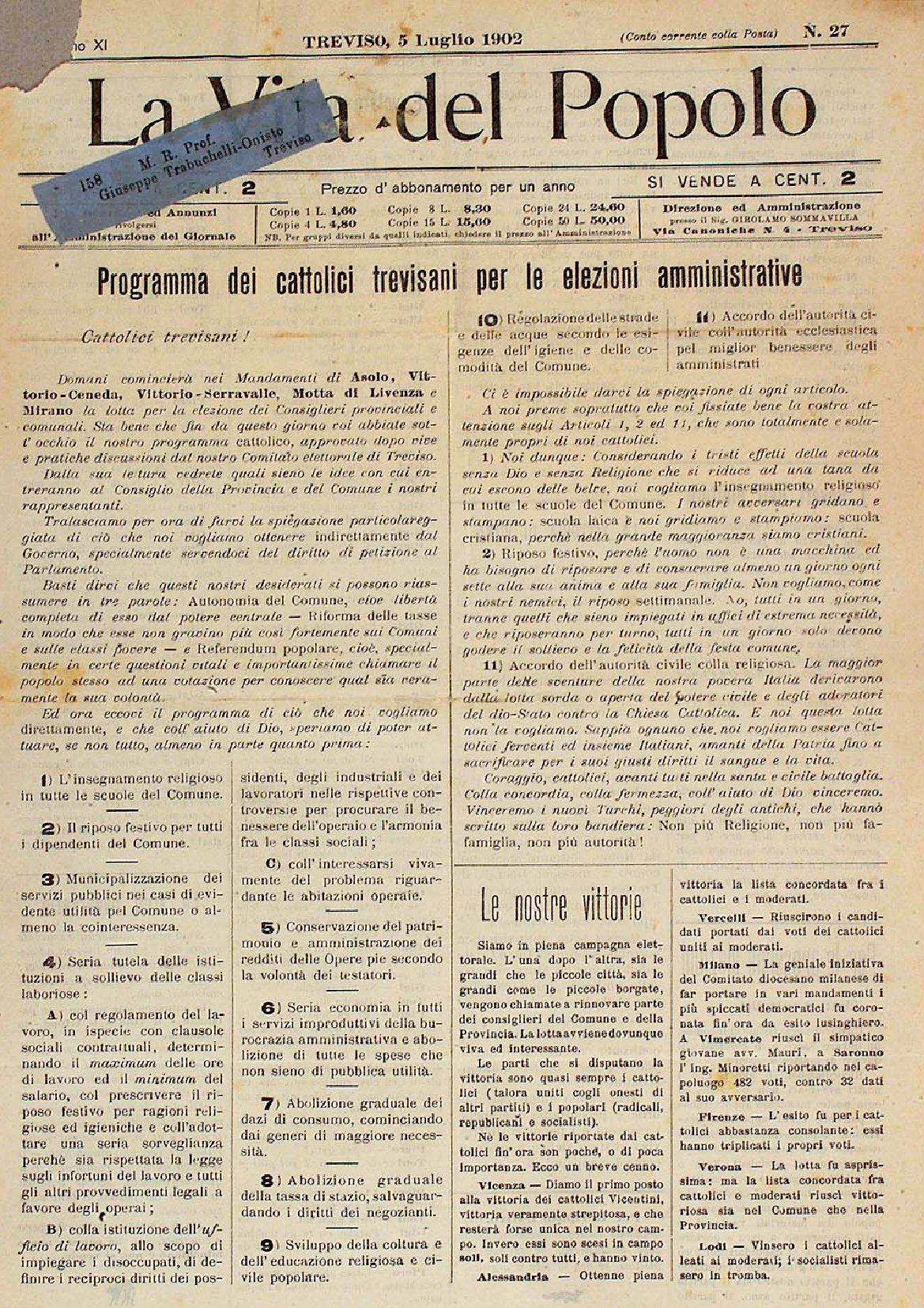 La Vita del Popolo n. 37 del 13.9.1902