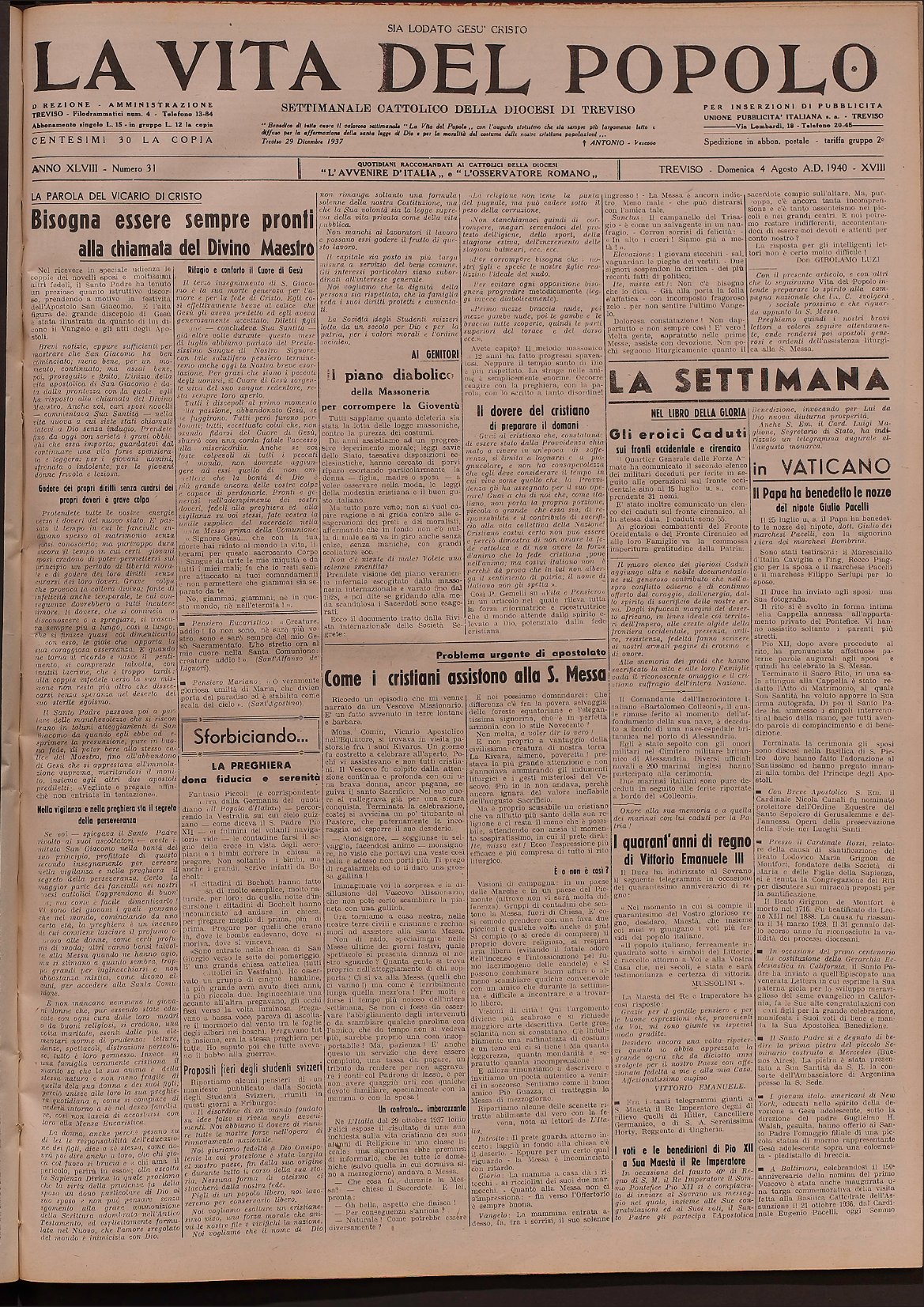 La Vita del Popolo n. 40 del 6.10.1940
