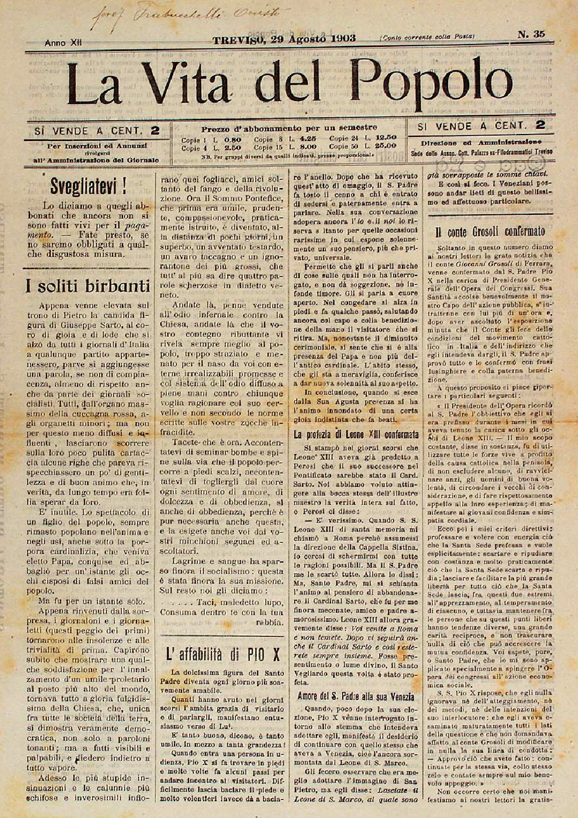 La Vita del Popolo n. 45 del 7.11.1903