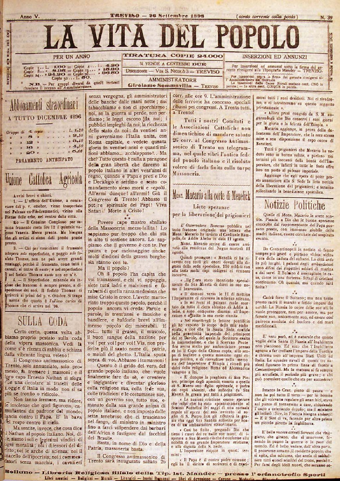 La Vita del Popolo n. 49 del 5.12.1896