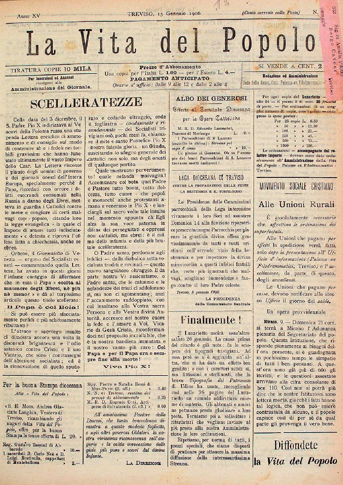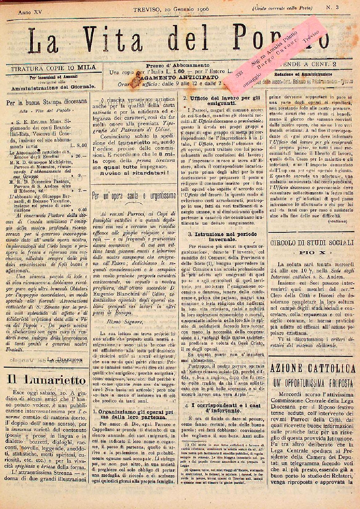 La Vita del Popolo n. 5 del 3.2.1906